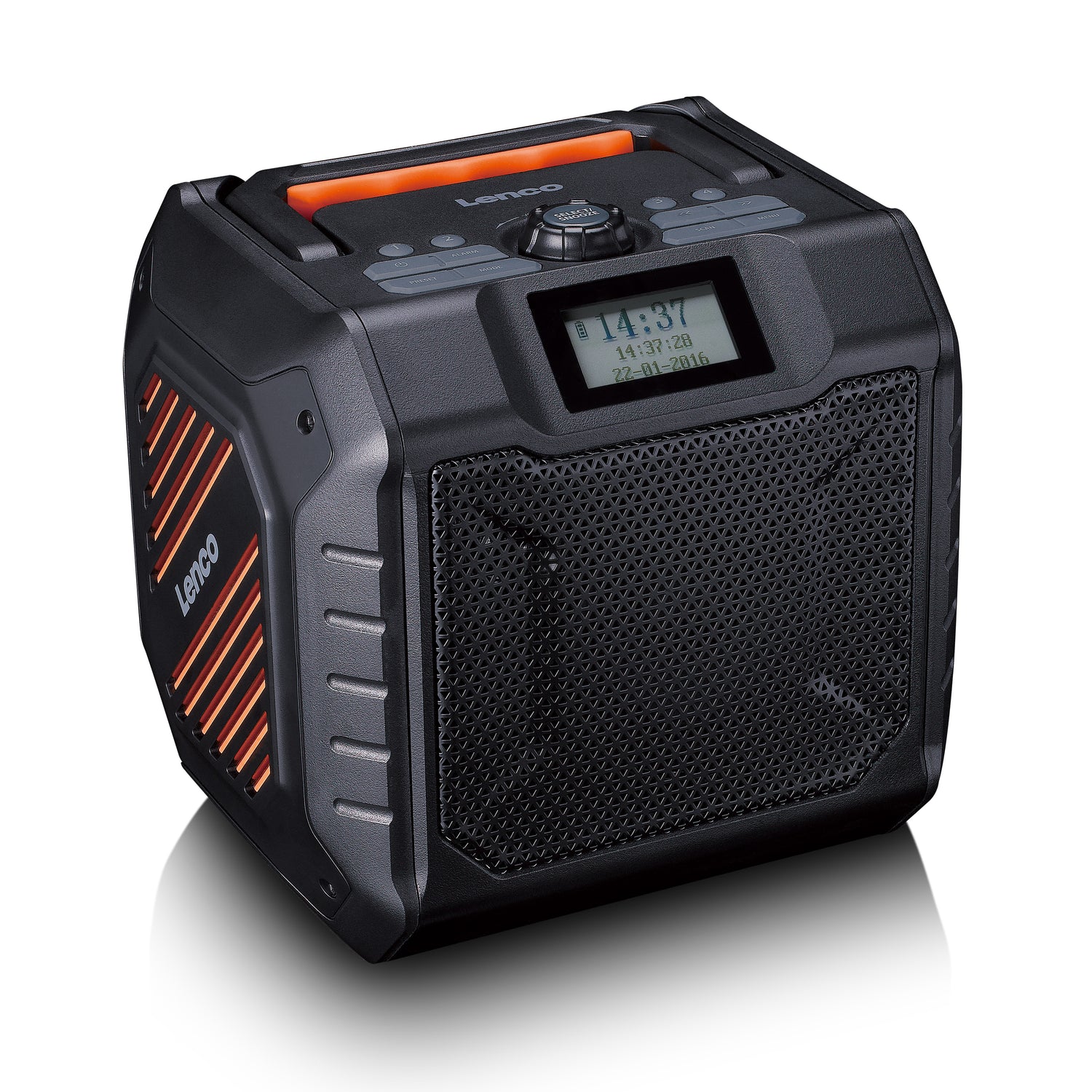 De Lenco ODR-160GY is een krachtige draagbare DAB+/FM radio met Bluetooth® en een geïntegreerde oplaadbare batterij met een batterijduur van tot wel 20 uur. De radio is IPX5 spuitwaterdicht en heeft een robuust design, waardoor de radio ook uitermate geschikt is om te gebruiken als bouwradio of outdoor radio. Door de handgreep aan de bovenkant van de ODR-160GY, neem je de radio gemakkelijk overal mee naar toe. De radio beschikt daarnaast over onder andere een oplaadfunctie, een passieve bass radiator, een ingebouwde equalizer en een alarm functie. Of je nu binnen of buiten bent, met deze robuuste radio ben je altijd verzekerd van een krachtig geluid en maximale gebruiksvriendelijkheid. Ontdek zelf het gemak en de veelzijdigheid van de ODR-160GY, de krachtige opvolger van de populaire ODR-150GY met verbeterde functies!