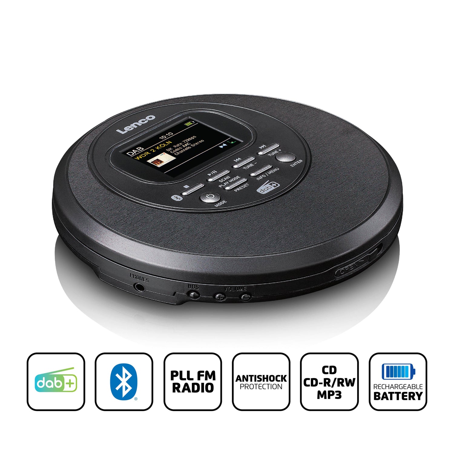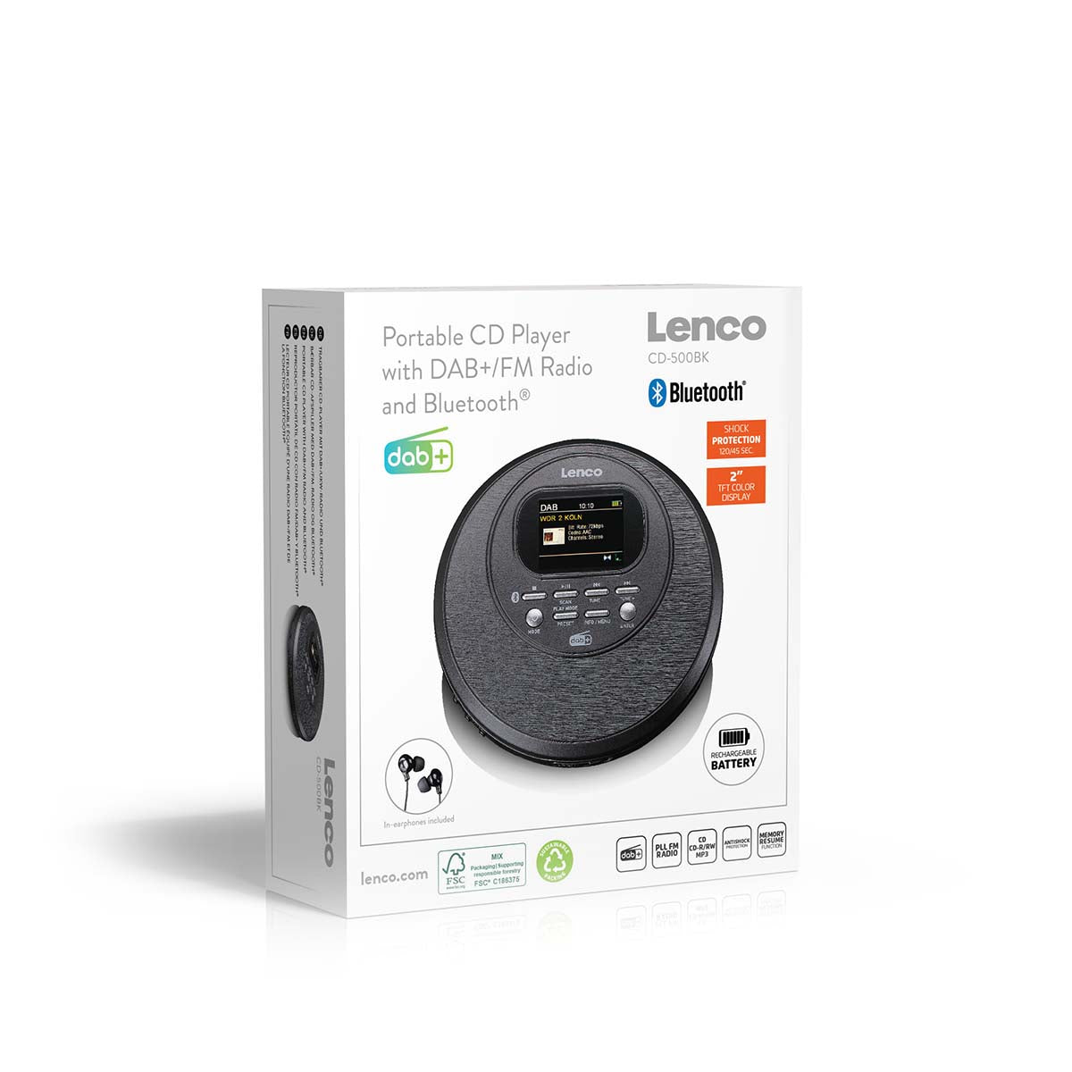 De draagbare CD-speler Lenco CD-500BK is een compacte CD-speler die je gemakkelijk overal mee naartoe kunt nemen. Dit apparaat kan zowel moderne MP3's als traditionele CD's afspelen en is tevens uitgerust met Bluetooth 5.0, waardoor je moeiteloos je CD-500BK kunt koppelen aan je favoriete Bluetooth-apparaat. Bovendien kan de discman worden gebruikt als DAB+ of FM-radio. Je kunt 20 ruisvrije DAB+ stations en 20 FM-stations vooraf programmeren. Op deze manier kun je met één druk op de knop direct naar je favoriete zenders luisteren. Bij de Lenco CD-500BK ontvang je Earphones en een USB-C-kabel.