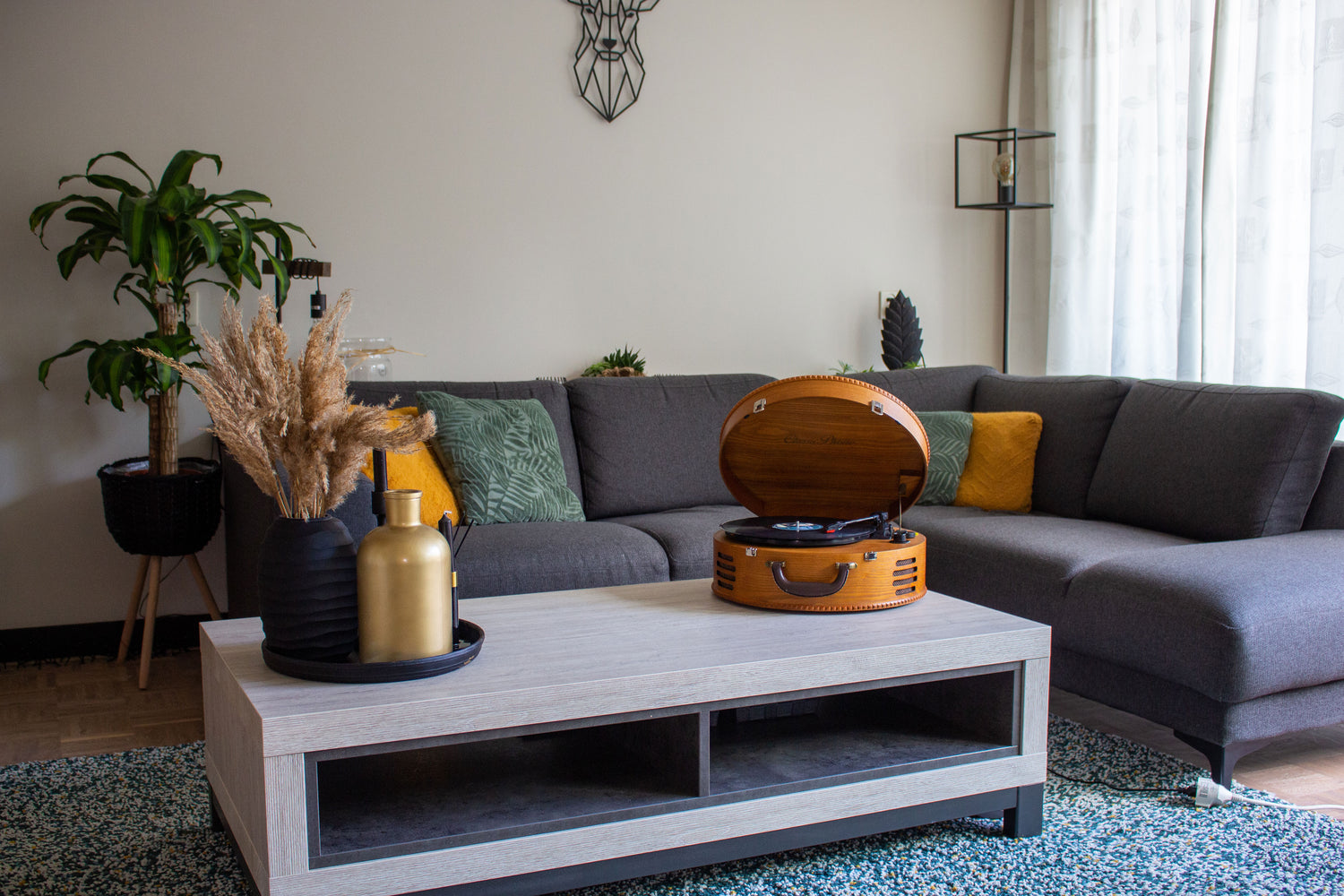 - Houten platenspeler met USB aansluiting
