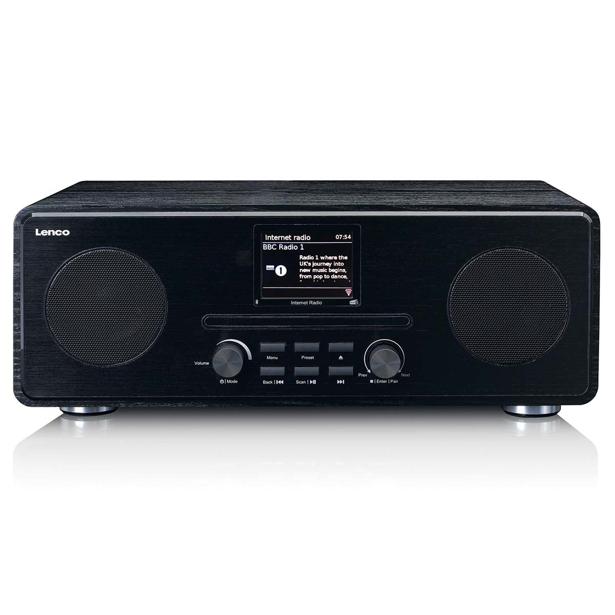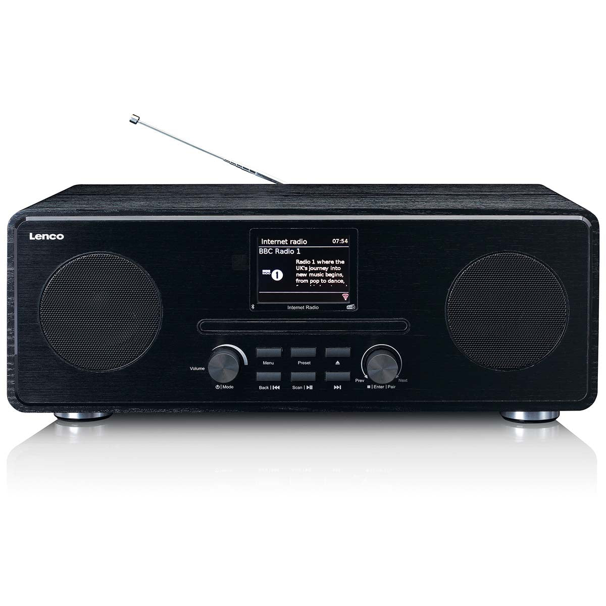 De Lenco DIR-260 is een handige internetradio DAB+ FM radio met cd en Bluetooth ontvangst. Dit model heeft een stijlvolle en moderne uitstraling en LCD-kleurenscherm van 7 cm.