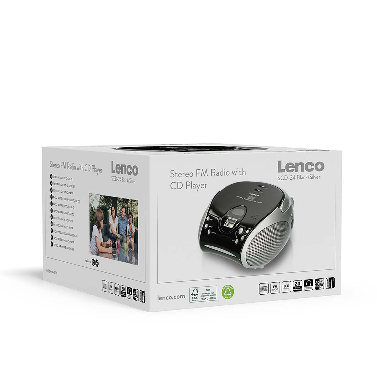 De Lenco SCD-24 is een draagbare FM radio/CD-speler voor jong en oud. De overzichtelijke vormgeving maakt de Lenco SCD-24 gemakkelijk te bedienen. Je hoeft de Lenco SCD-24 alleen maar aan te sluiten op het stopcontact of te voorzien van batterijen. Met één druk op de knop kun je meteen genieten van jouw favoriete CD's of radiozender.