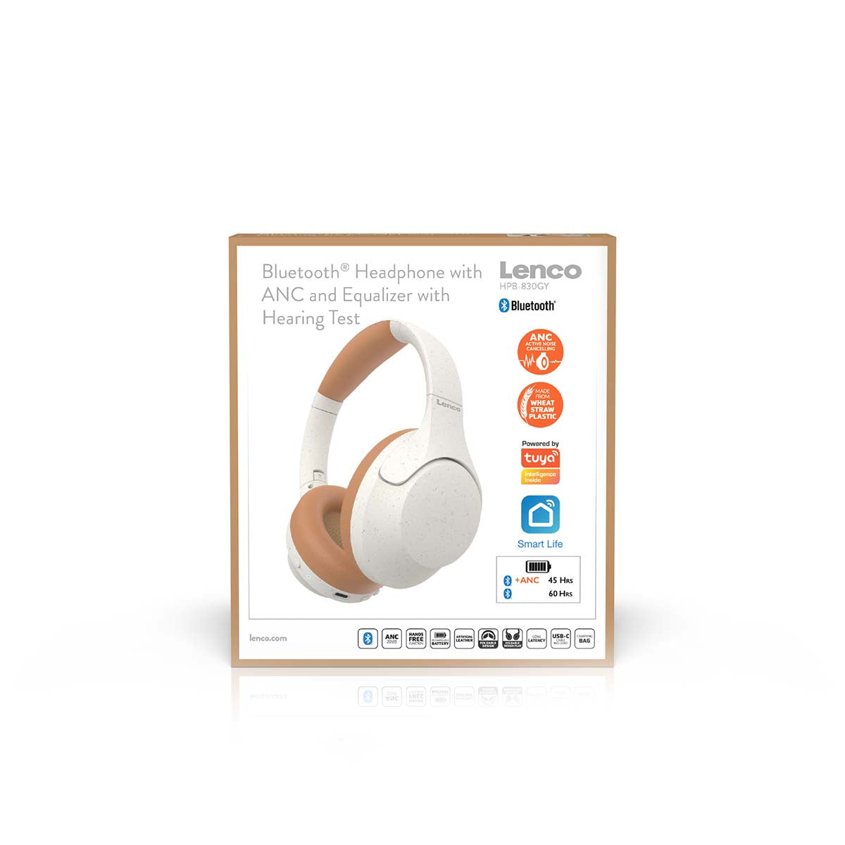 LENCO HPB-830GY - Draadloze Bluetooth® koptelefoon met Active Noise Cancelling en ingebouwde microfoons - Grijs/Wit