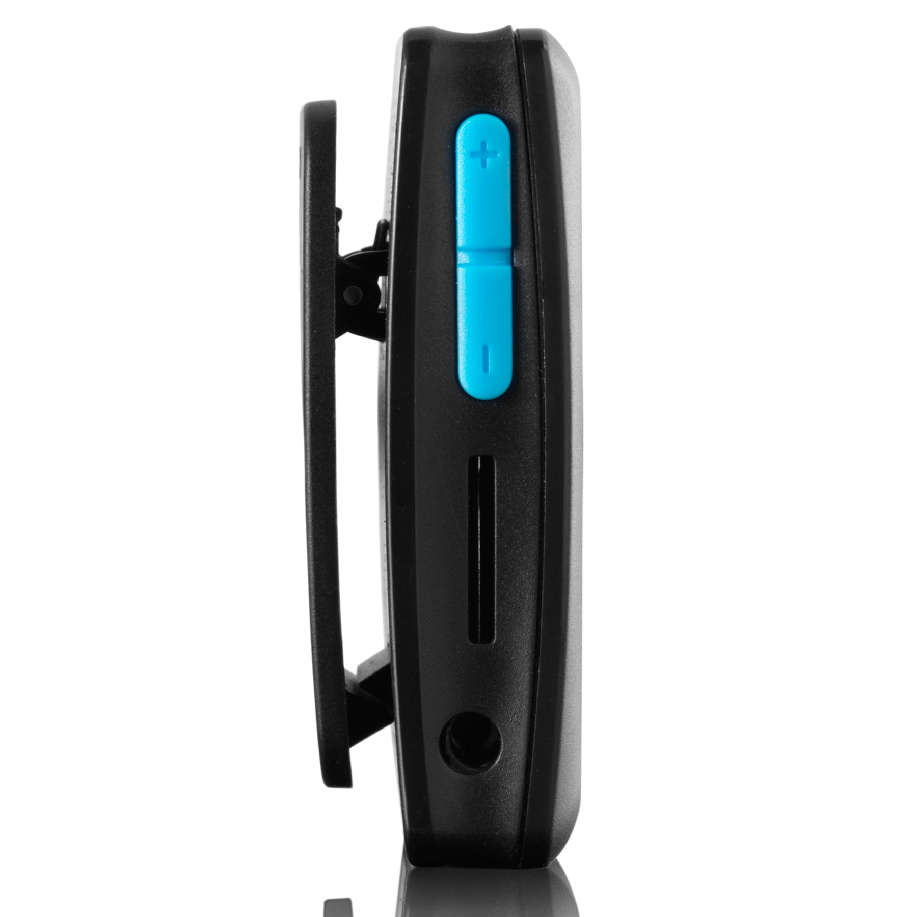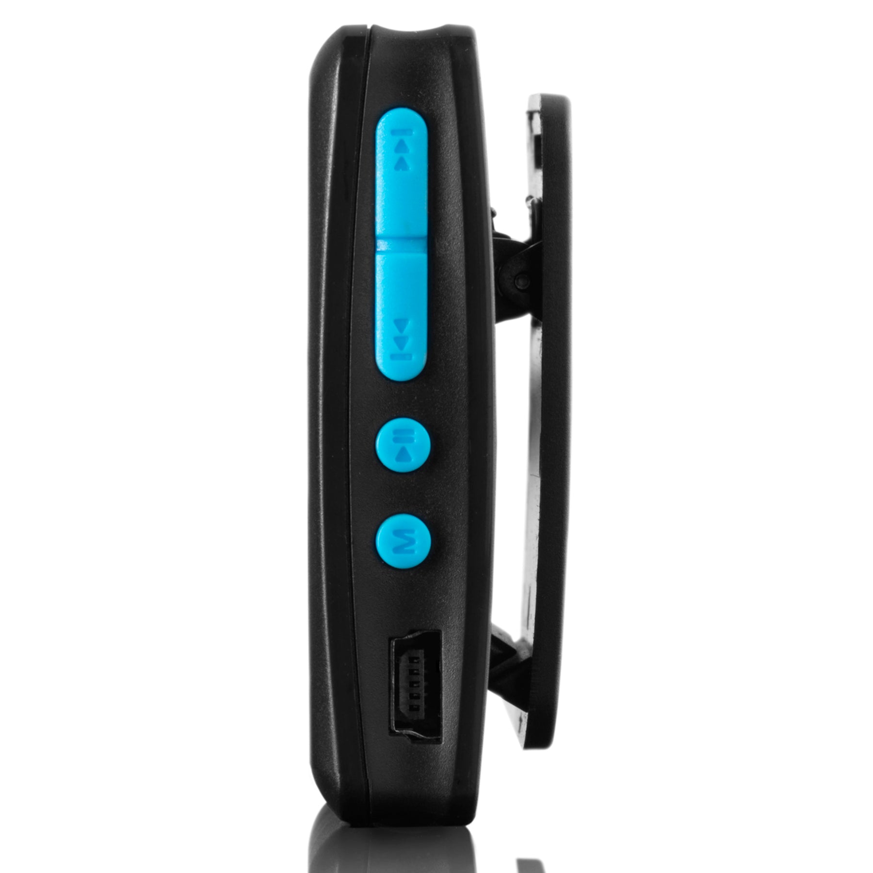 De MP3-speler is verkrijgbaar in 2 kleuren: zwart/blauw en zwart/roze.