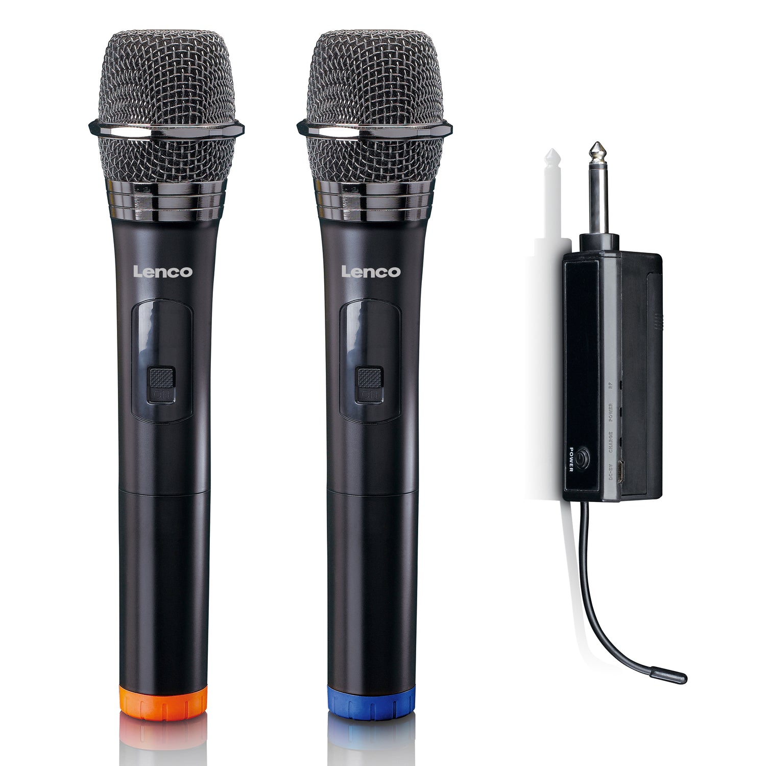 Dankzij de enkele ontvanger die de 2 microfoons weergeeft heb je slechts 1 microfoon ingang nodig voor deze 2 microfoons. Het zijn dynamische microfoons met een metalen rooster en een cardioïde richtingskarakteristiek waardoor ze tegen een stootje kunnen en minder last hebben van rondzingen. Karaoke party, bruiloft of conferentie de Lenco MCW-020 is de juiste keuze door het gebruikersgemak en het sterke bereik van 15m. De draadloze mini ontvanger, uitgevoerd in een 6,3mm jack plug, kan direct op de microfoon ingang worden ingeprikt en wordt gevoed door 1 AA batterij. Extra kabels of adapters zijn niet nodig. Beide microfoons worden gevoed door 2 AA batterijen en zijn voorzien van een aan/ uit schakelaar. De set wordt geleverd inclusief de AA batterijen en werkt minimaal 6 uur non stop wanneer volledig opgeladen. De draadloze microfoons werken op vaste frequenties van 863,5 & 864,5 Mhz.