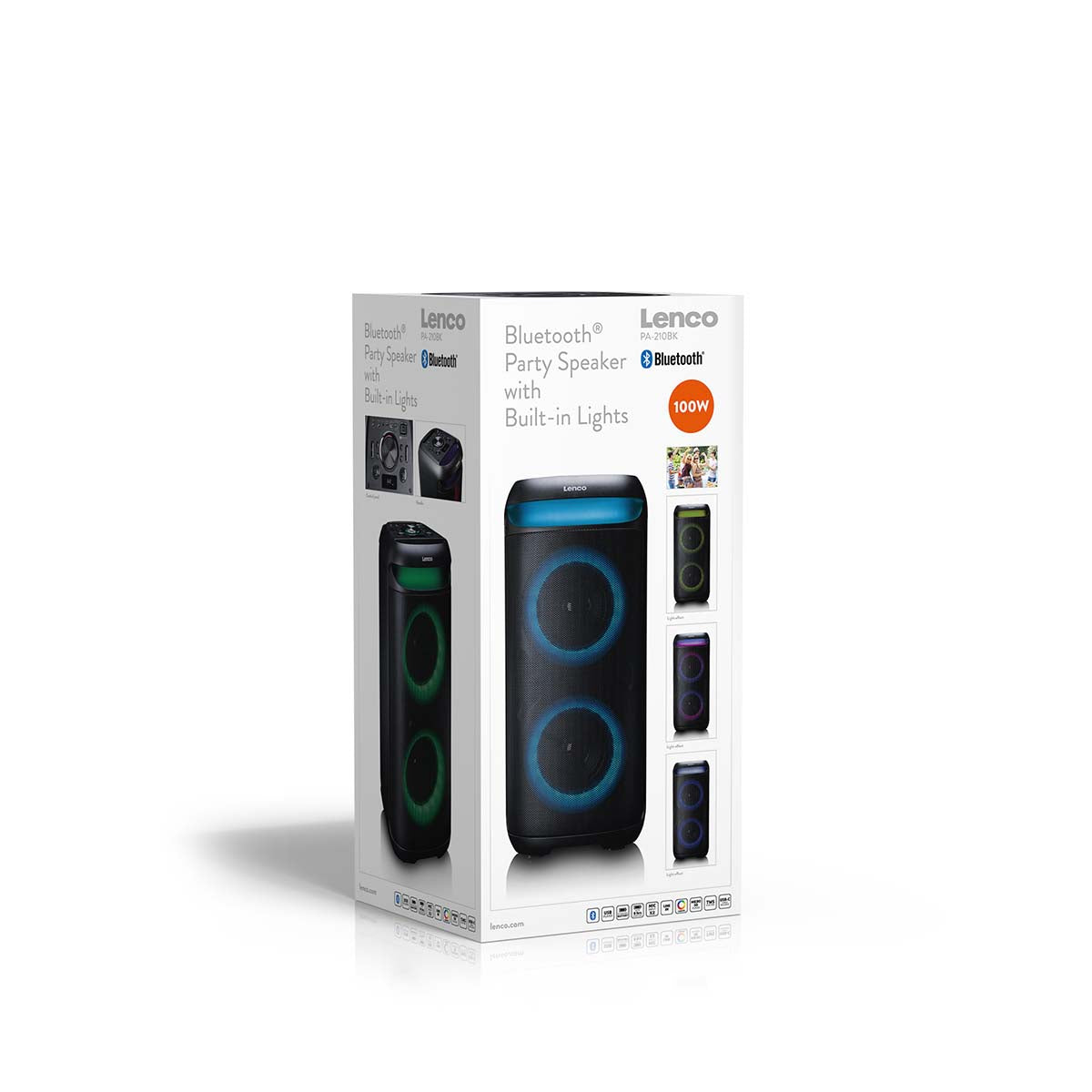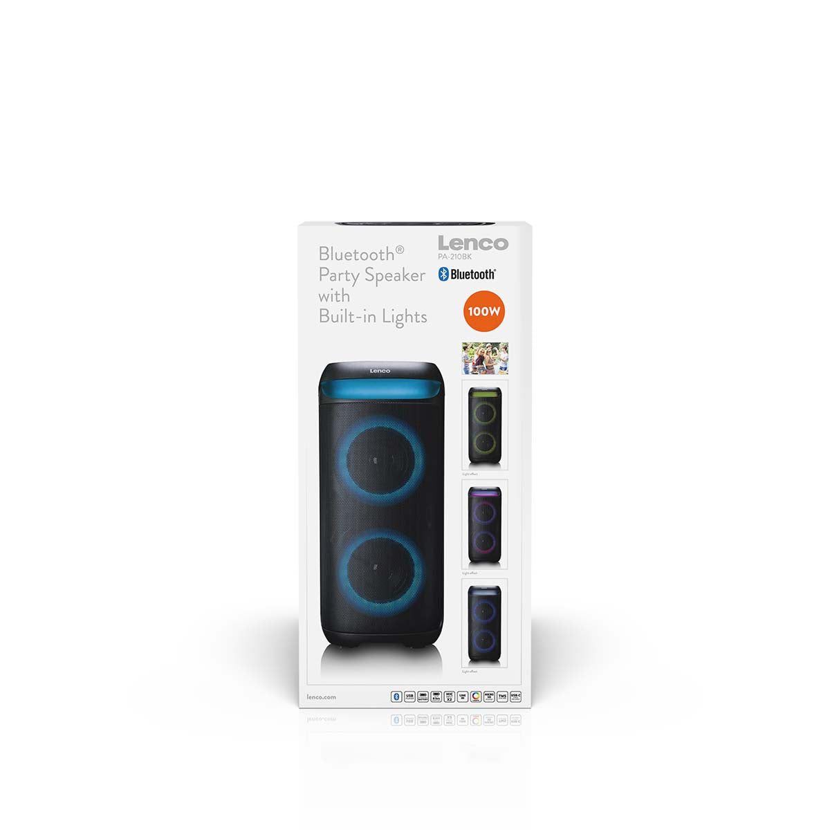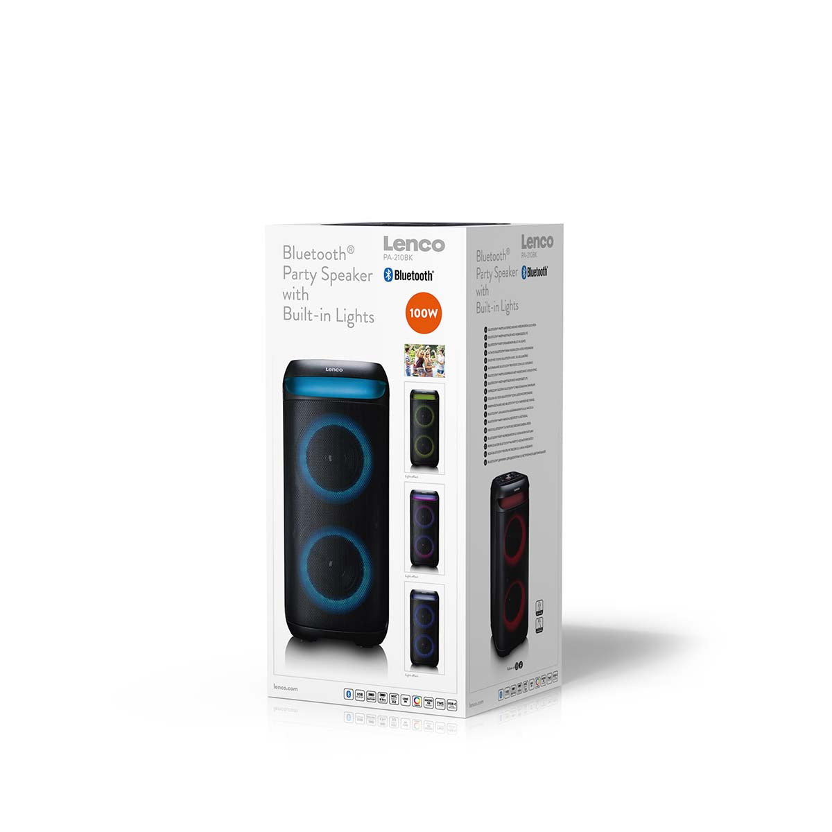 Maak van elke gelegenheid een feest met de Lenco PA-210BK Bluetooth® speaker. Deze krachtige Bluetooth® party speaker levert indrukwekkend geluid, dynamische LED-verlichting en veelzijdige afspeelmogelijkheden. Dankzij Bluetooth® 5.3 verbind je eenvoudig je smartphone, tablet, platenspeler of laptop en geniet je draadloos van je favoriete muziek in hoge kwaliteit. Of je nu een huisfeest geeft, een karaoke-avond organiseert of een presentatie verzorgt: met de PA-210BK ben je verzekerd van kracht, sfeer en flexibiliteit.