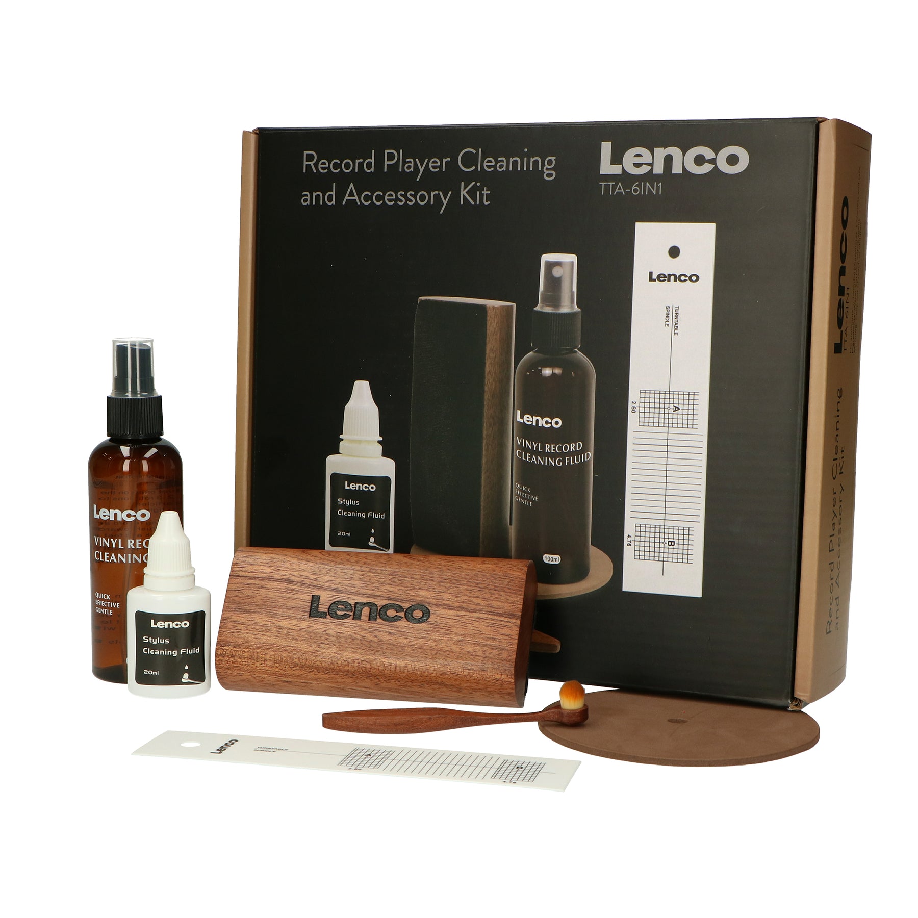 Wanneer het aankomt op het koesteren van je kostbare vinylcollectie en het bereiken van de best mogelijke geluidskwaliteit, is er geen compromis mogelijk. Lenco's TTA-6IN1, een 6-in-1 platenspeler accessoireset en luxe LP schoonmaakset, is zorgvuldig samengesteld om ervoor te zorgen dat je platenspeler en je vinylplaten in onberispelijke staat blijven, ongeacht hun leeftijd. Hier is een diepgaande blik op wat je in deze complete set zult vinden: