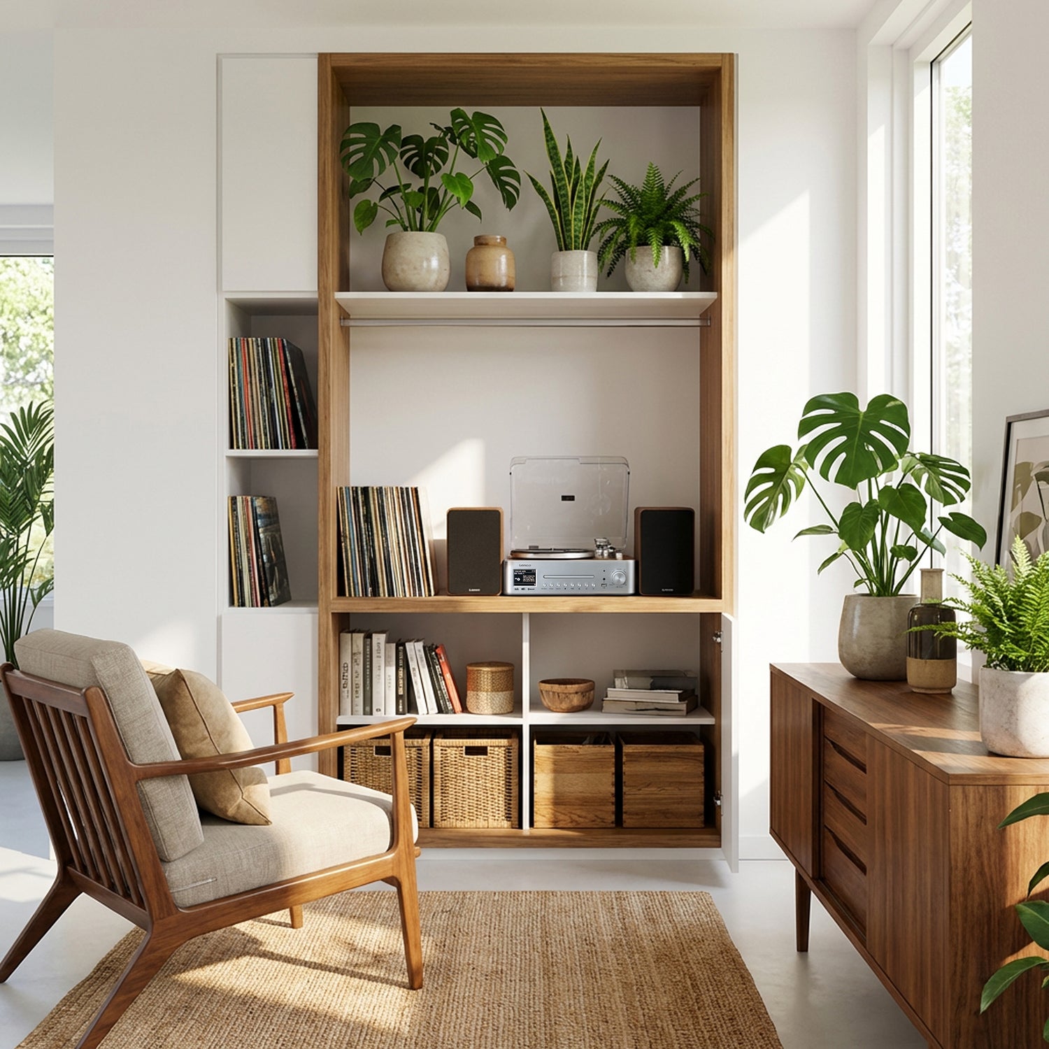 De meegeleverde platenspeler heeft een Moving Magnetic Cartridge (AT3600), een metalen plateau, arm en contragewicht voor nauwkeurige weergave. De antislipfunctie zorgt voor nauwkeurige tracking en vermindert vervorming en slijtage van vinylplaten. Deze specificaties maken het systeem geschikt voor vinylliefhebbers en bieden een betrouwbare analoge audio-ervaring naast digitale opties.