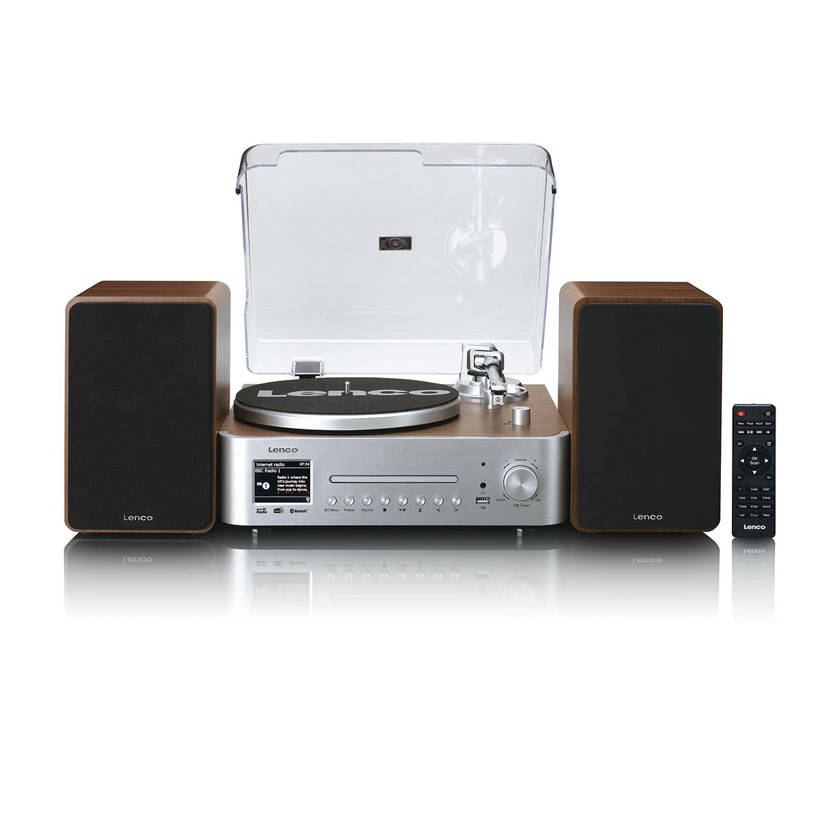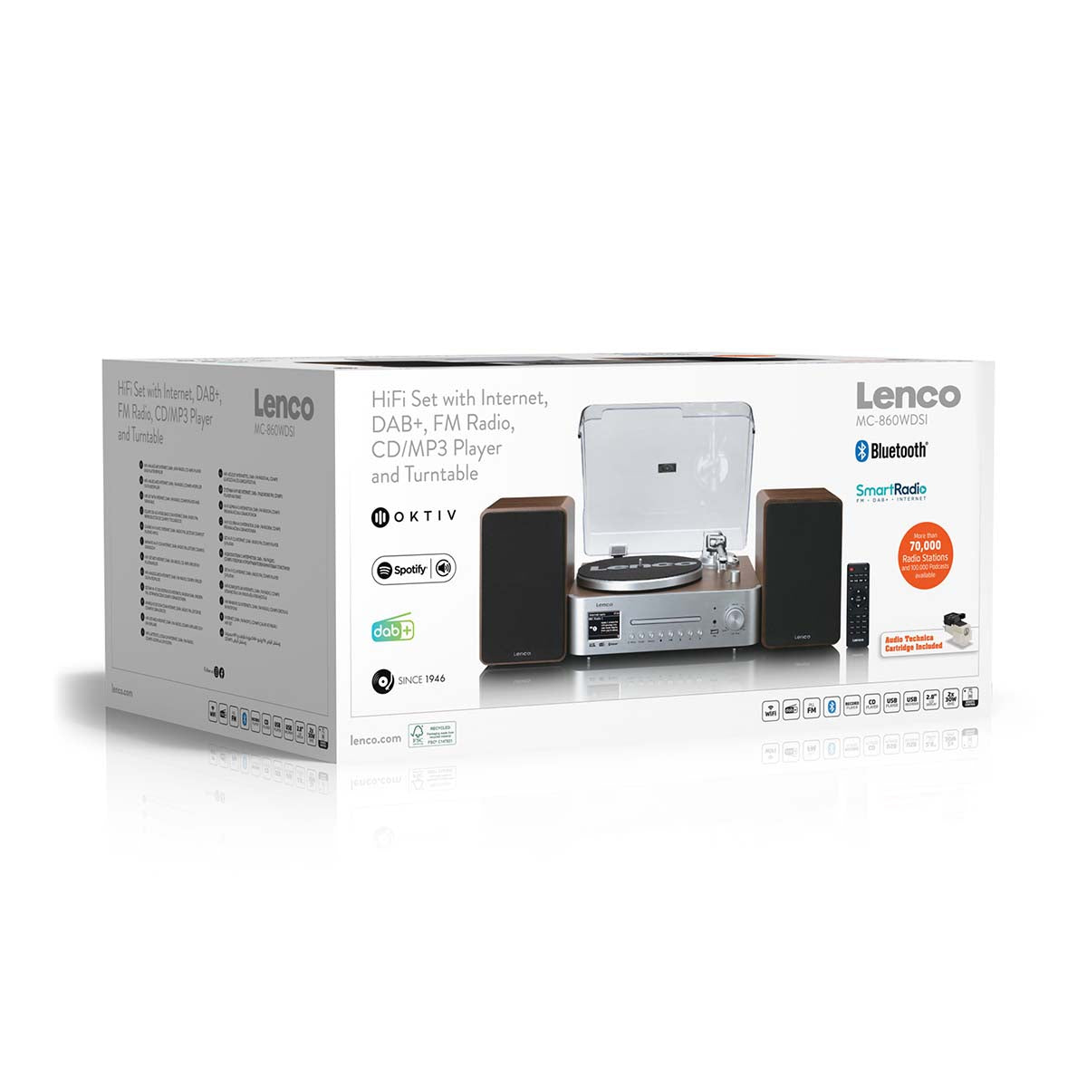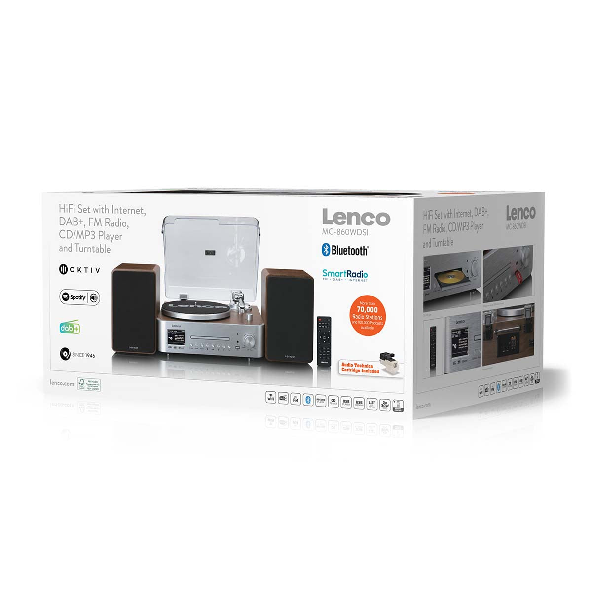 De Lenco hifiset ondersteunt internetradio, DAB+ en FM. Internetradio biedt toegang tot een breed scala aan wereldwijde zenders, terwijl DAB+ zorgt voor digitale helderheid en FM-dekking voor lokale uitzendingen. Deze combinatie stelt eindgebruikers in staat om eenvoudig diverse content te verkennen, waardoor de set geschikt is voor thuis, op kantoor en in commerciële omgevingen.
