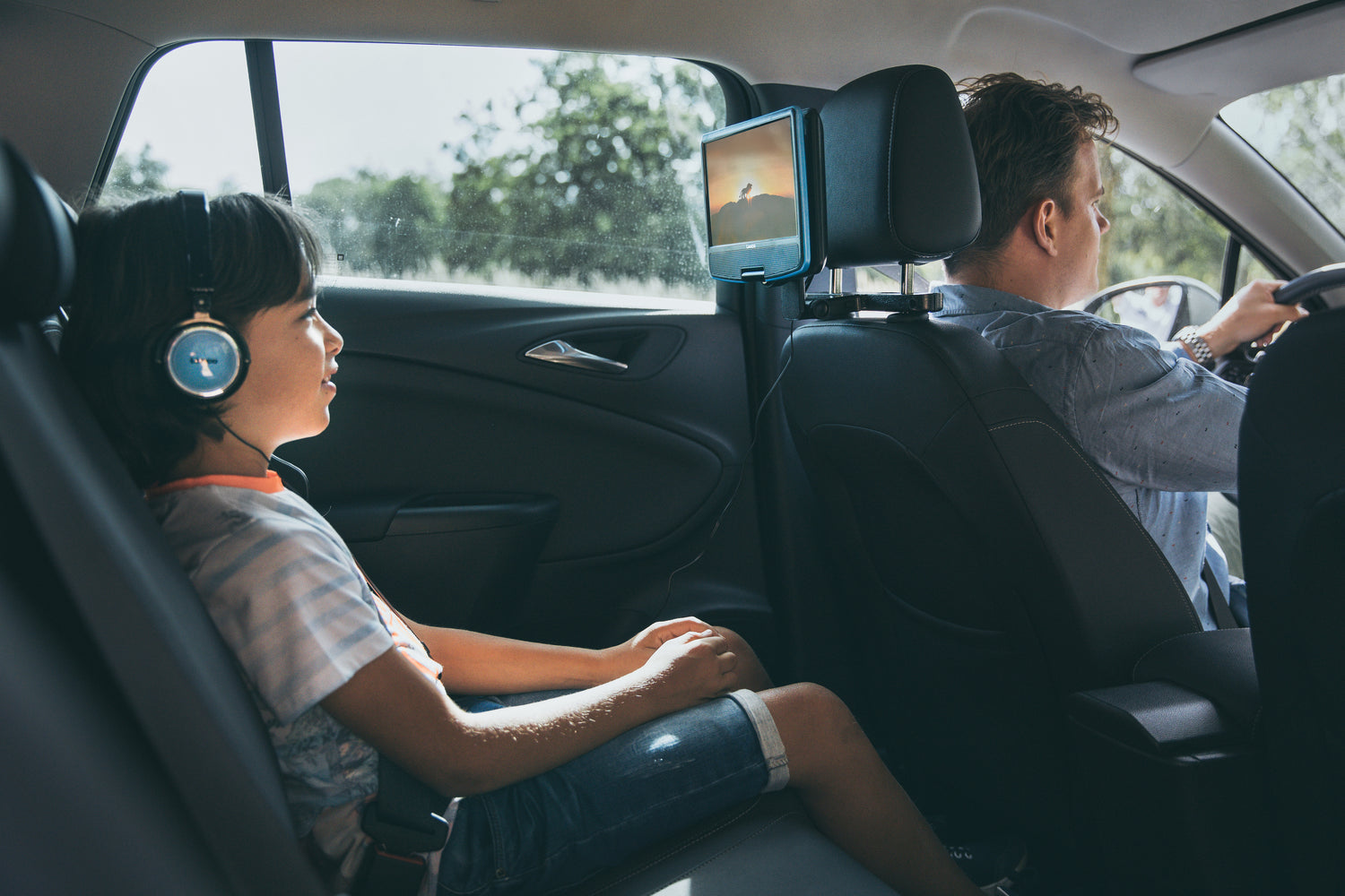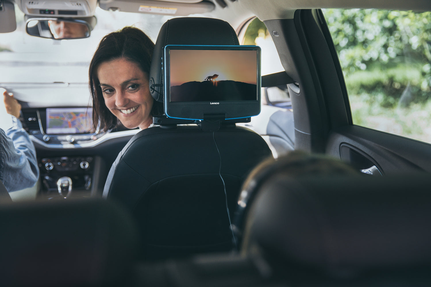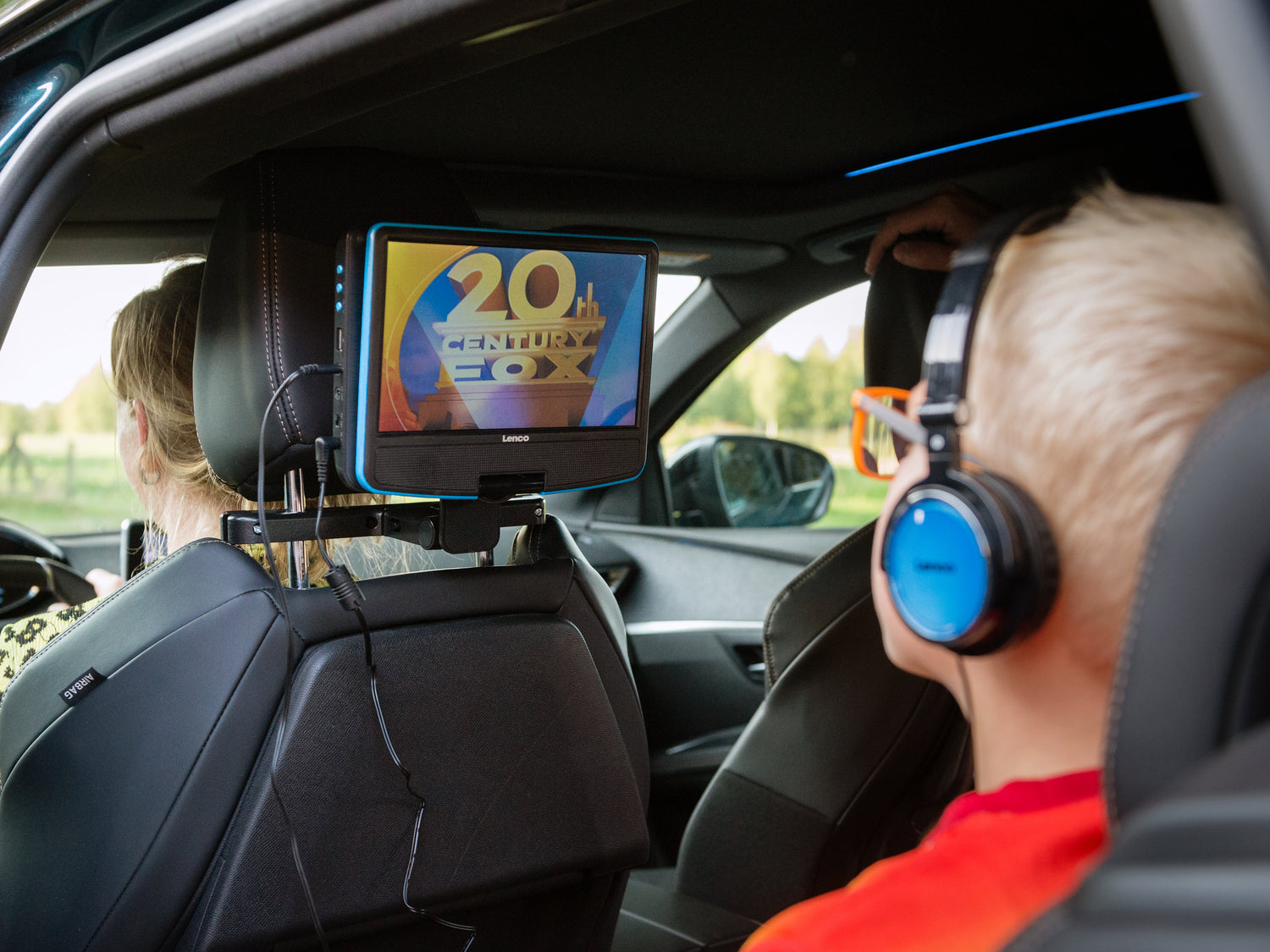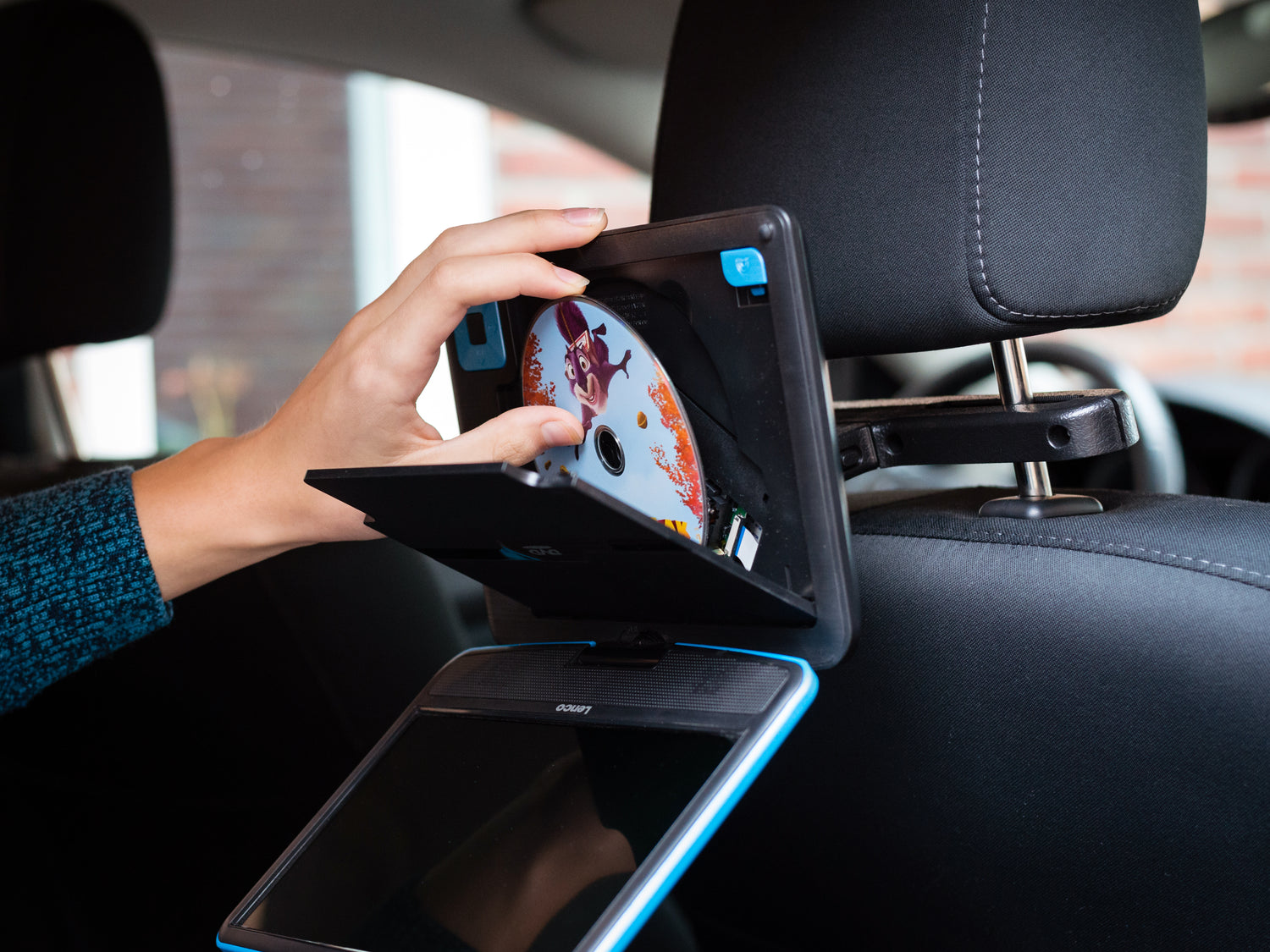 Via de USB-aansluiting kun je ook eigen video's en foto's op de dvd-speler zetten en deze samen met het gezin bekijken. Bevestig de dvd-speler op de achterkant van de hoofdsteun van de passagier voor je, zodat je makkelijk naar het scherm kunt kijken.