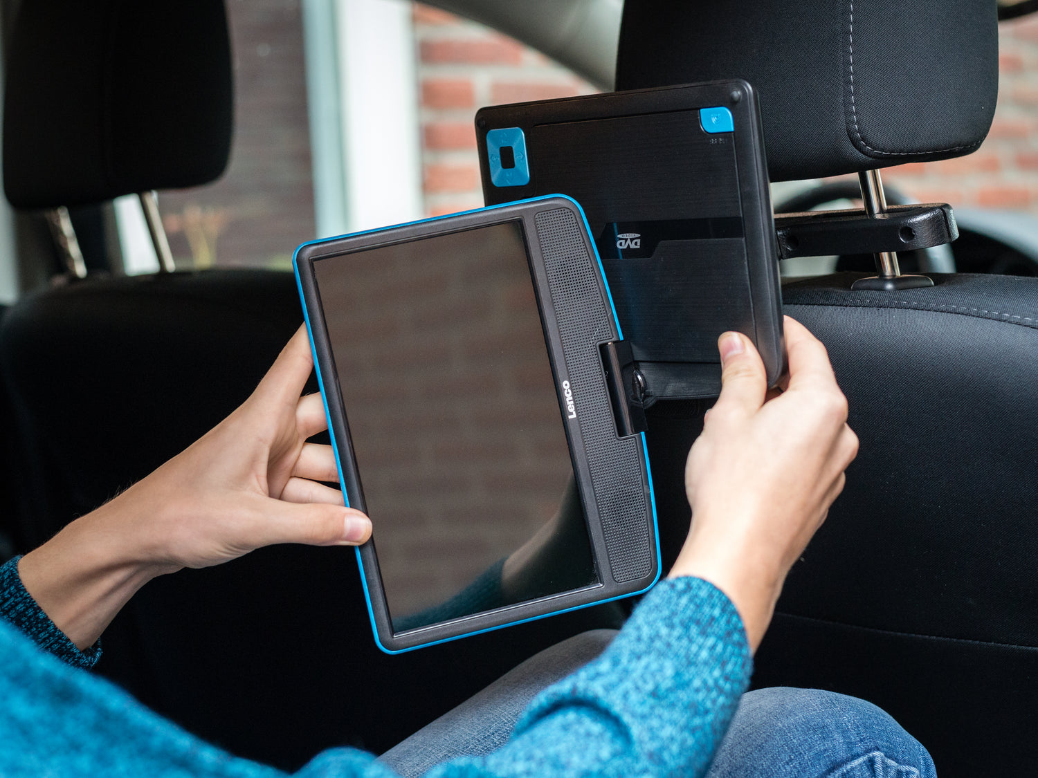 Door middel van een hoofdsteunbevestiging kunnen kinderen naar het dvd-schermpje kijken van deze portable dvd-speler. Dit is echt ideaal. Het scherm kan bevestigd worden op de achterkant van de hoofdsteun van de passagier die voorin de auto zit.