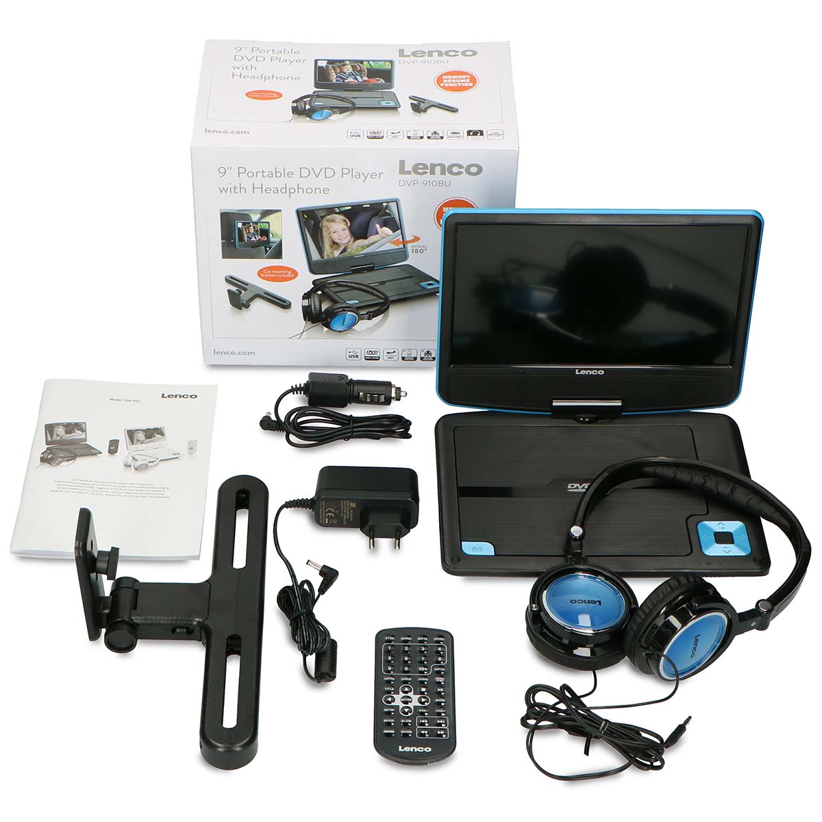 De Lenco DVP-910 is een compacte DVD-speler met 9 inch beeldscherm die je overal mee naartoe kunt nemen. Het scherm is 180 graden draaibaar en kantelbaar. meegeleverd zijn de hoofdtelefoon en de ophangbeugel.