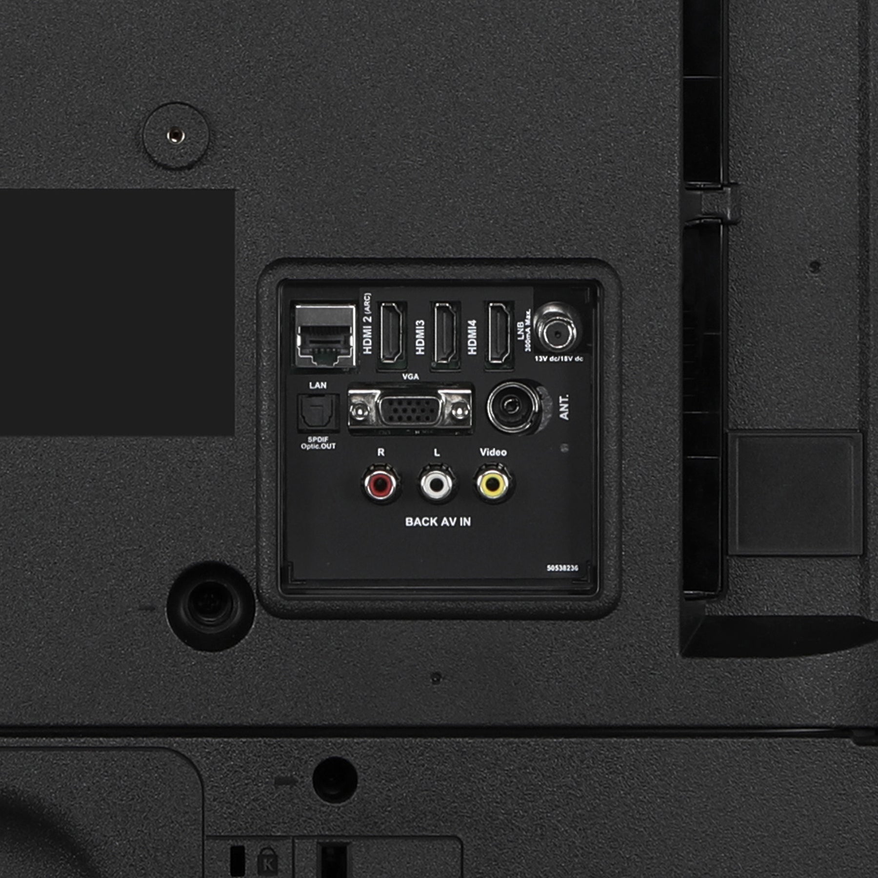 | Ingangen audio / video / data | 75 Ohm antenne, AUX IN 3.5mm, CI+, Ethernet Lan (RJ45), HDMI IN 4x, Sateliet F connector, USB IN 2x, VGA, YPbPr |