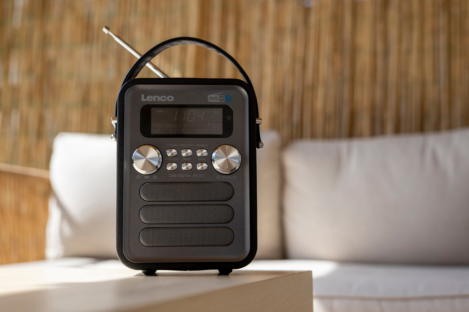 From now on, the Lenco PDR-051 DAB+ radio will accompany you wherever you go. With a weight of less than a kilo, dimensions of only 18 by 13 centimeters and a convenient handle, not only can you enjoy Lenco at home, you can also take your Lenco with you to the park to enjoy with friends.