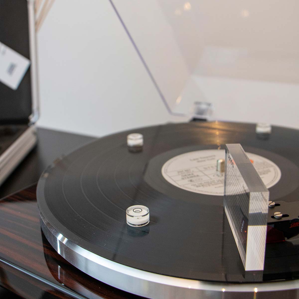With the four small spirit levels, it's easy to check if the individual parts of the turntable are correctly mounted in relation to each other. They can be used individually to check the correct position of the tonearm relative to the turntable platter. For the passionate turntable enthusiast, these four small spirit levels are a valuable addition to a perfectly balanced listening environment.