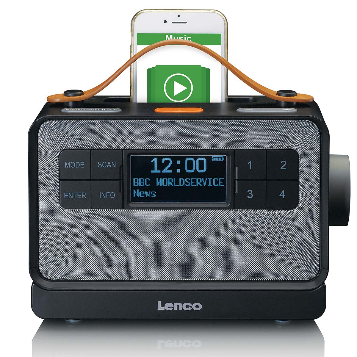 This portable radio lets you enjoy the radio with digital sound quality. This radio can also be used as a portable Bluetooth® speaker. Place your phone or tablet in the Lenco PDR-065BK’s holder and simply stream your favourite music. You can take this DAB+ radio with you on the road and use it anywhere, thanks to the integrated rechargeable battery. Charging is easy due to its included charging station.