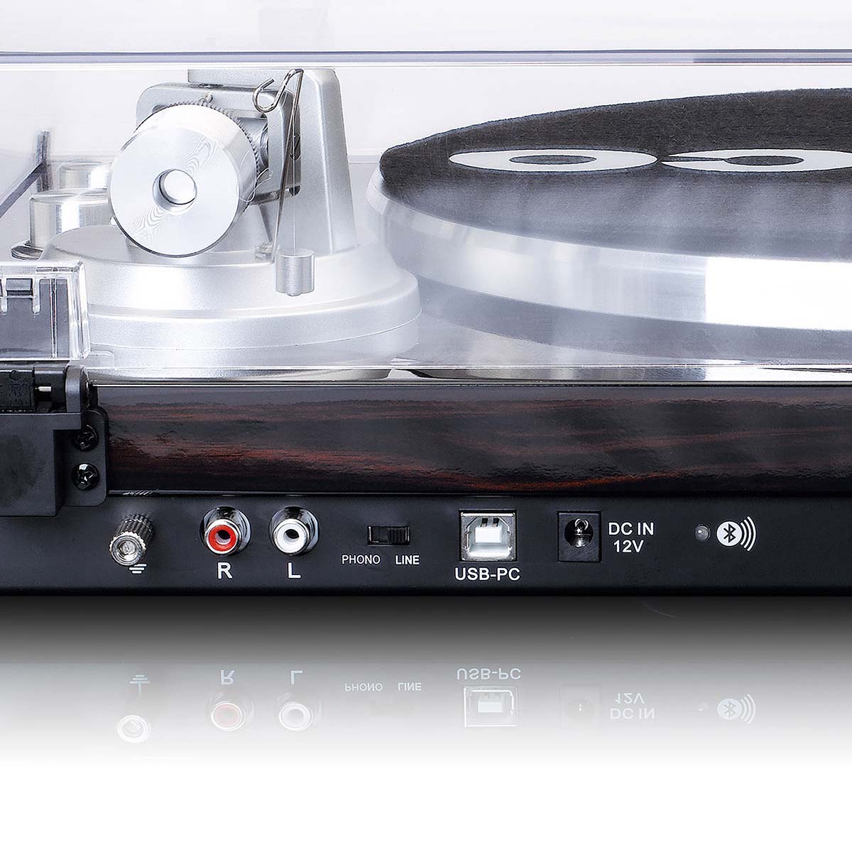The LBT-188 has a metal record player platter, belt drive, RCA connection and an arm with a counterweight. The plastic cover ensures that your record player does not disappear under a layer of dust and protects it from any outside damage.