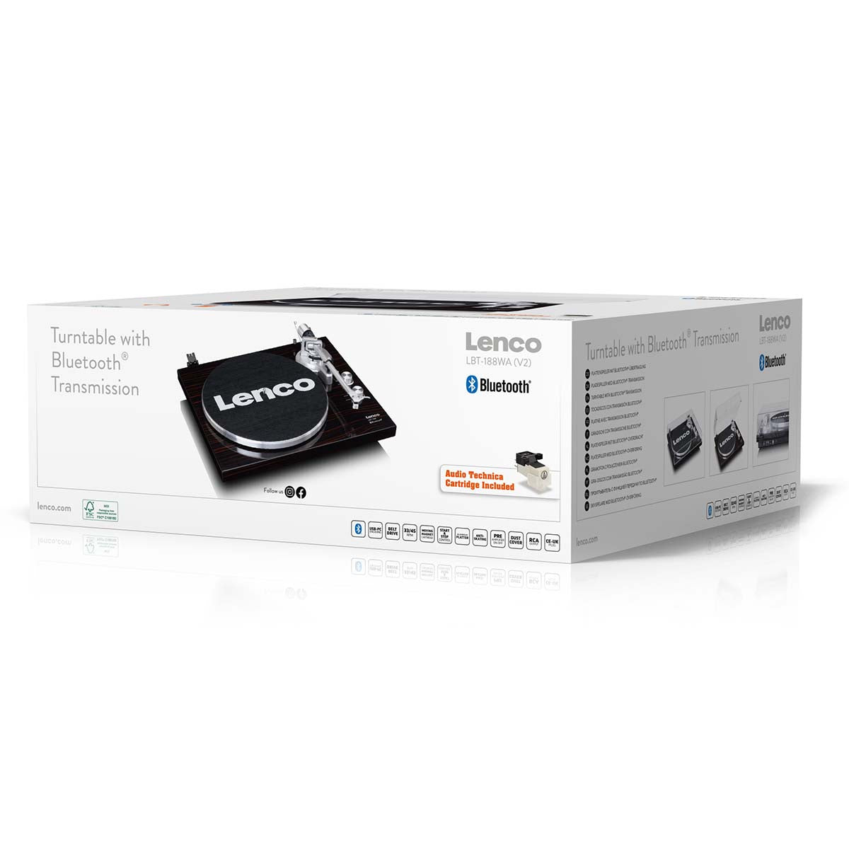 The Lenco LBT-188 is available in 2 beautiful designs, Pine and Walnut.