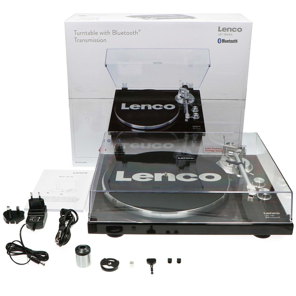 The Lenco LBT-188 is a record player with Bluetooth® functionality. Connecting this record player to your Bluetooth® speaker or headphones is easy and convenient providing the ideal set-up for enjoying a full warm sound while lounging on your couch at home. Retrieve your old records from the attic and play them on this modern record player. Enjoy the crystal-clear sound of your vinyl, both old and new. Switch from 33 to 45 rpm to play your vinyl record at the right speed.