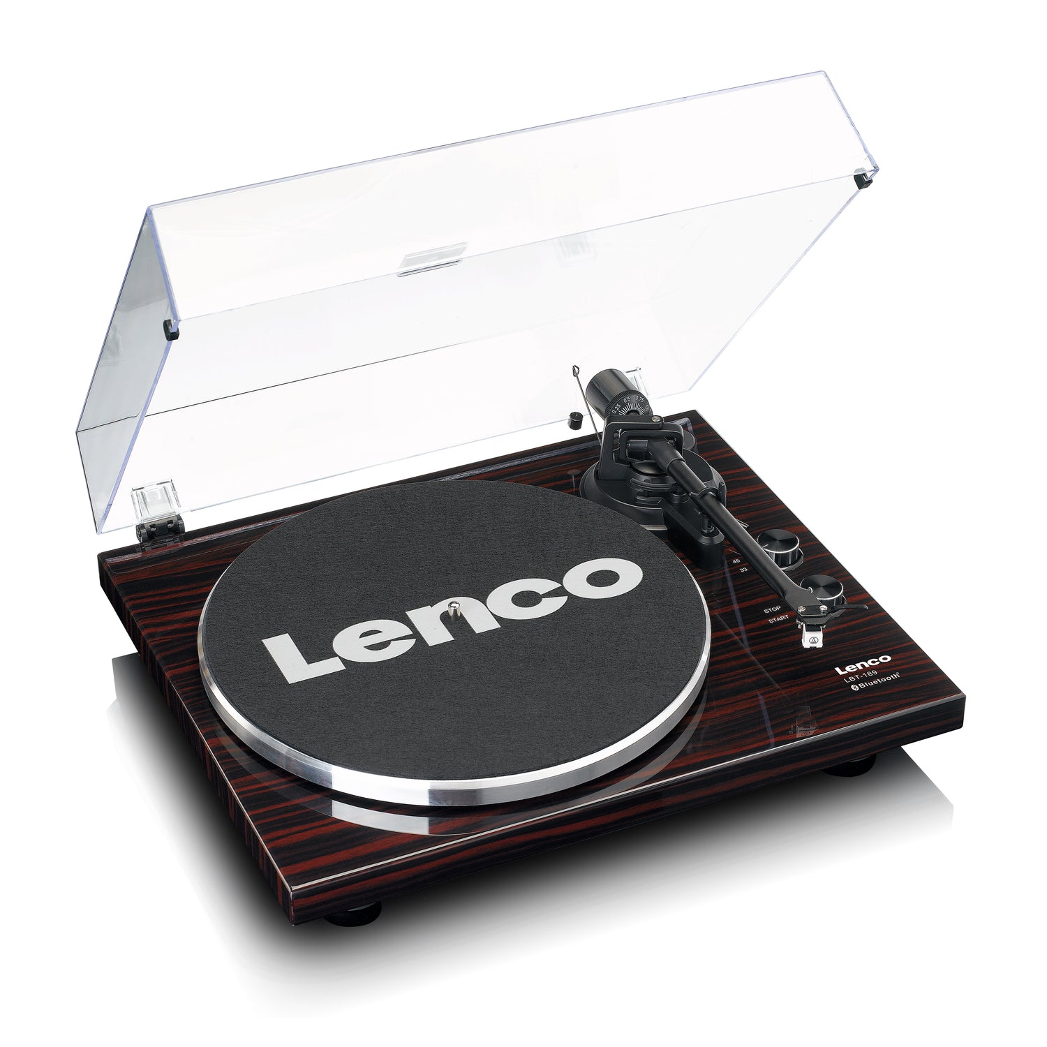 The Lenco LBT-189WA is a record player with Bluetooth® functionality. Connecting this record player to your Bluetooth® speaker or headphones is easy and convenient providing the ideal set-up for enjoying a full warm sound while lounging on your couch at home. Retrieve your old records from the attic and play them on this modern record player. Enjoy the crystal-clear sound of your vinyl, both old and new. Switch from 33 to 45 rpm to play your vinyl record at the right speed.