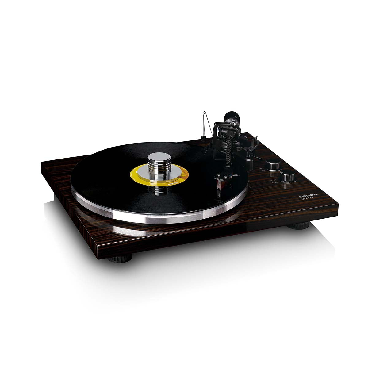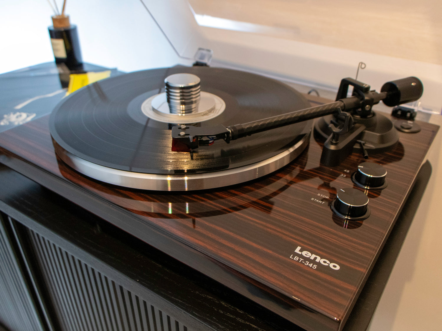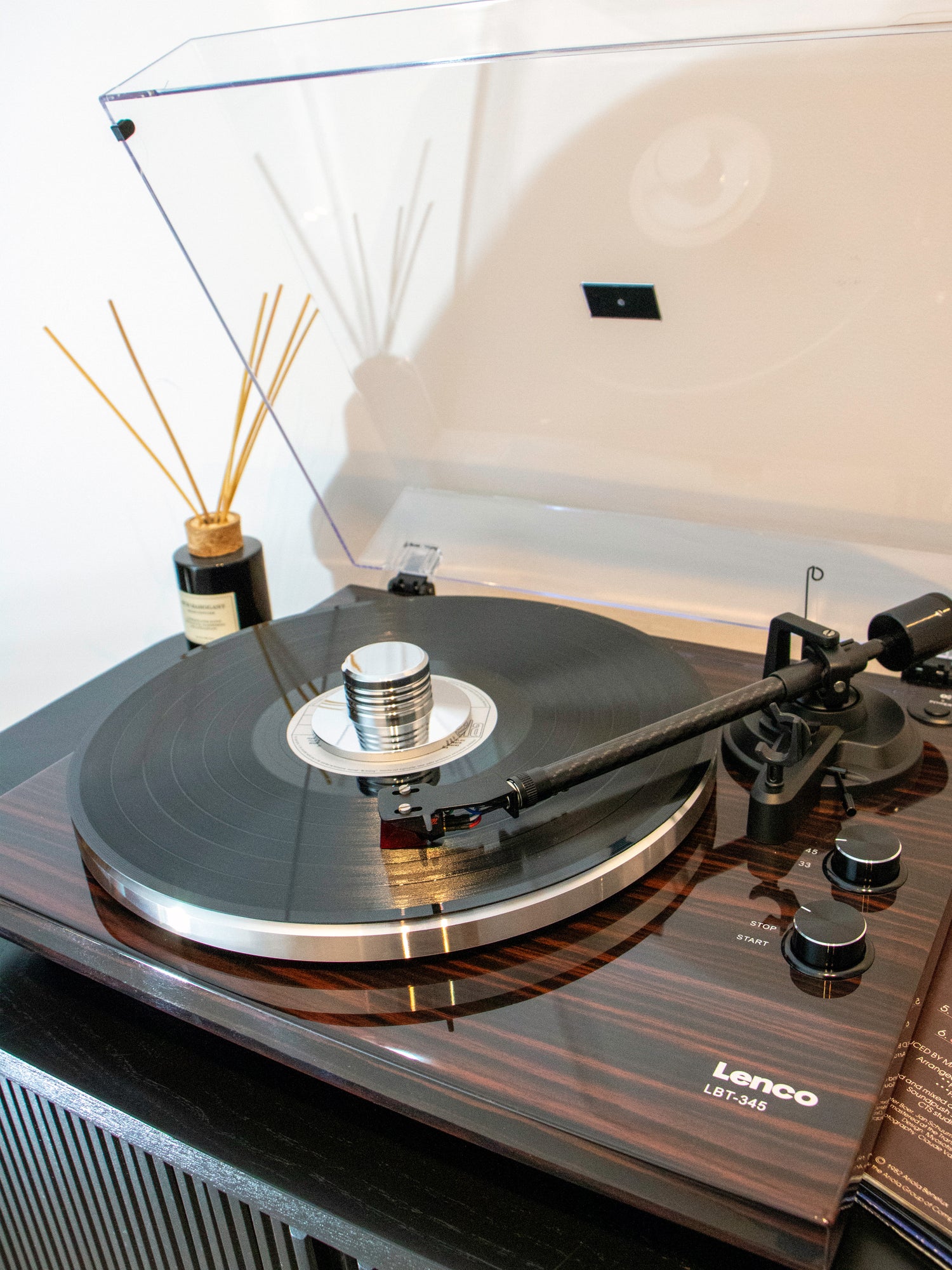 The LBT-345WA comes with the Lenco TTA-076SI, a chrome-plated record stabilizer, also known as a tracking weight, which can be placed on the center of the record player platter. The stabilizer then lightly presses on the record, ensuring even contact with the record player. This reduces any vibrations, keeping the record securely in place, resulting in a more stable rotation. A more stable rotation, in turn, contributes to accurate and balanced sound reproduction.
