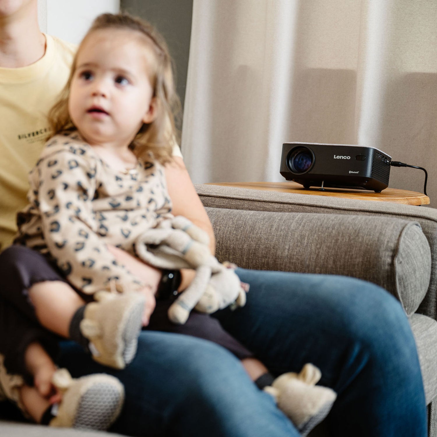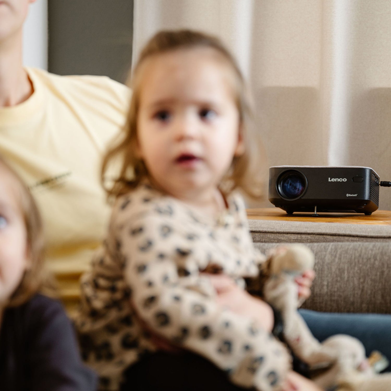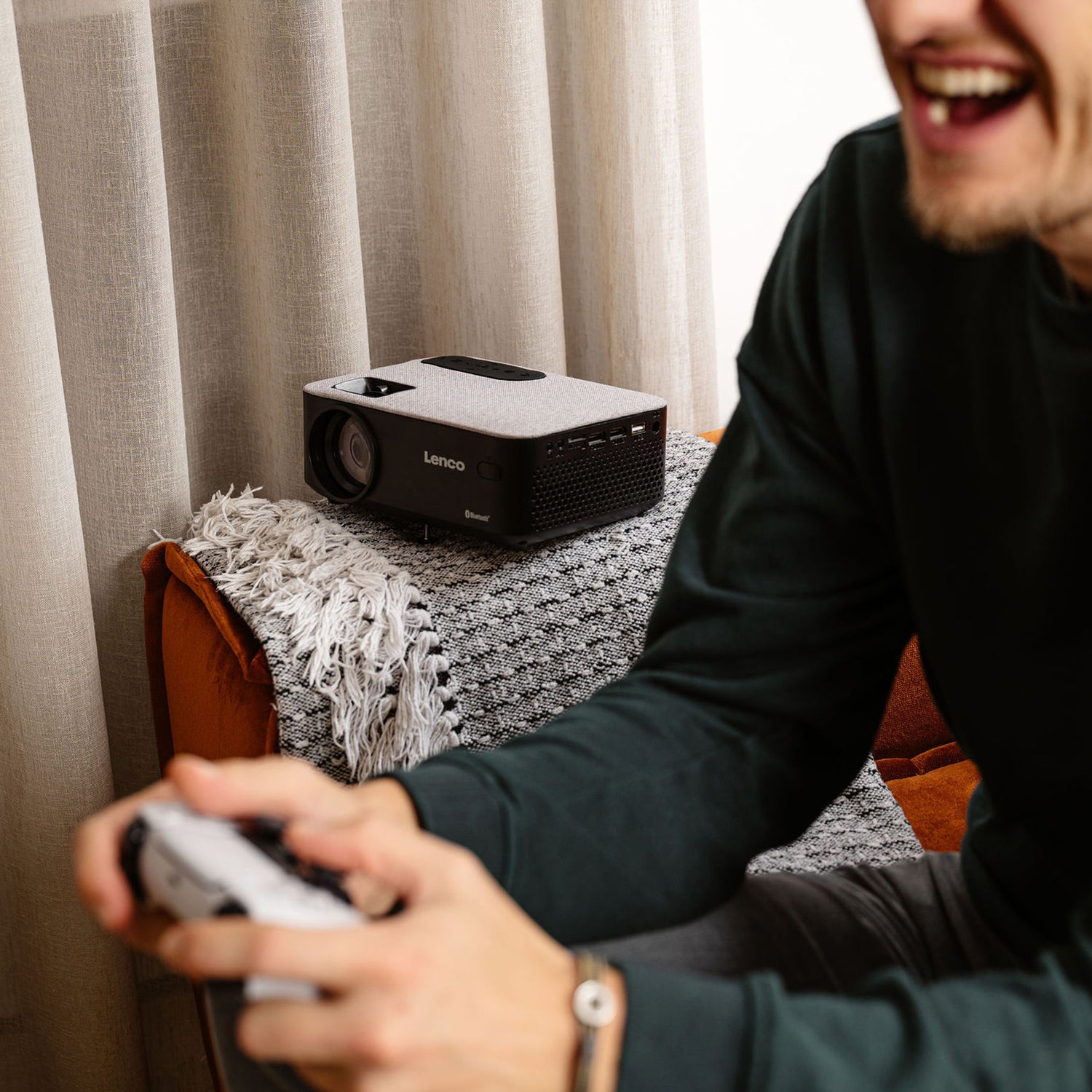 The Lenco LPJ-700 is compact and can be placed anywhere. This projector is quick and efficient to use. In addition to the Bluetooth® connection, the beamer has many connection options, such as 2 HDMI ports, 1 USB port, 1 Micro-SD card slot, 1 AV and 1 VGA connection. The beamer is MHL compatible so you can easily connect your Android or Apple device with an MHL cable (optional). The included remote control completes the LPJ-700.