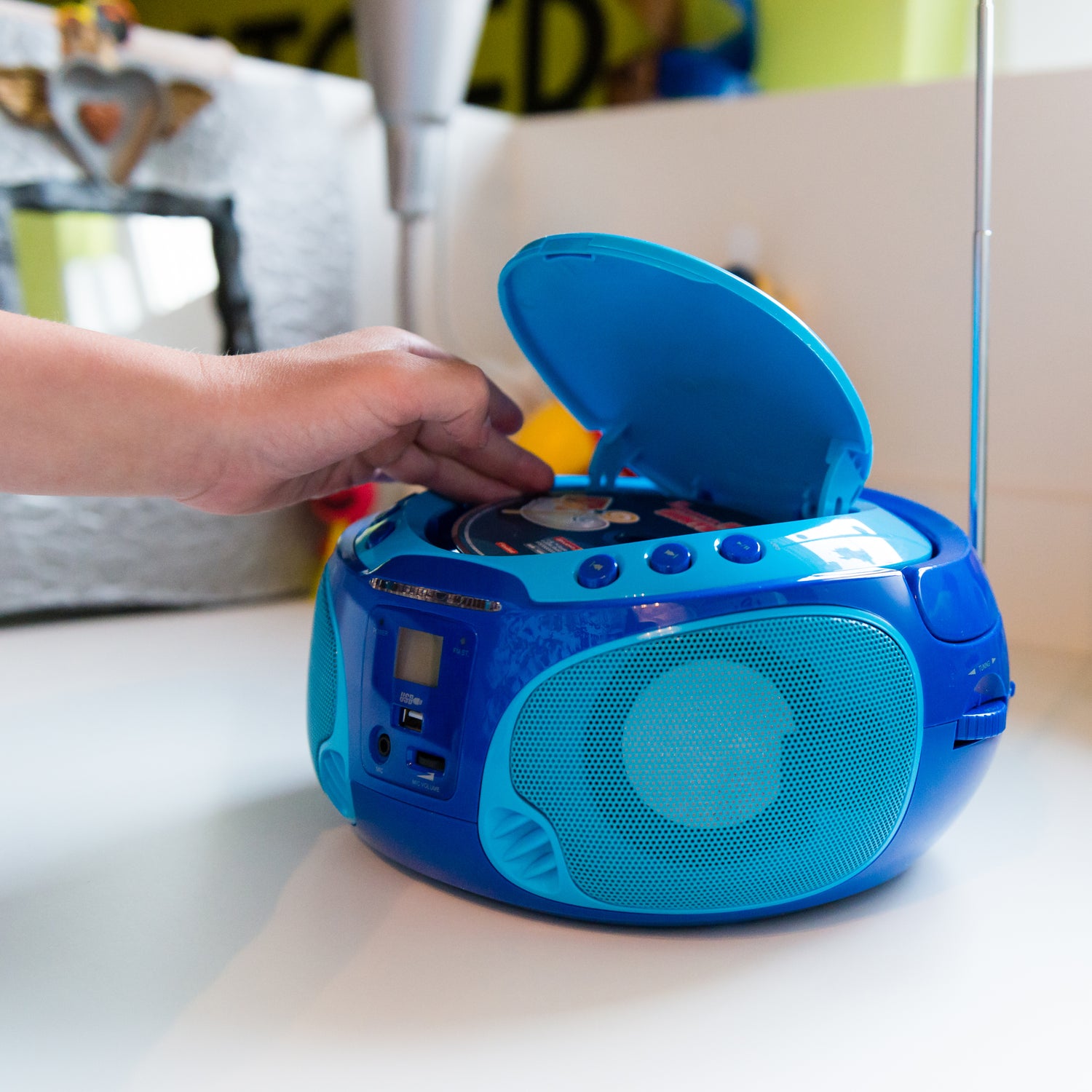 LENCO SCD-650BU - Portable FM Radio CD/MP3/USB Microphone & Light Effects - Blue