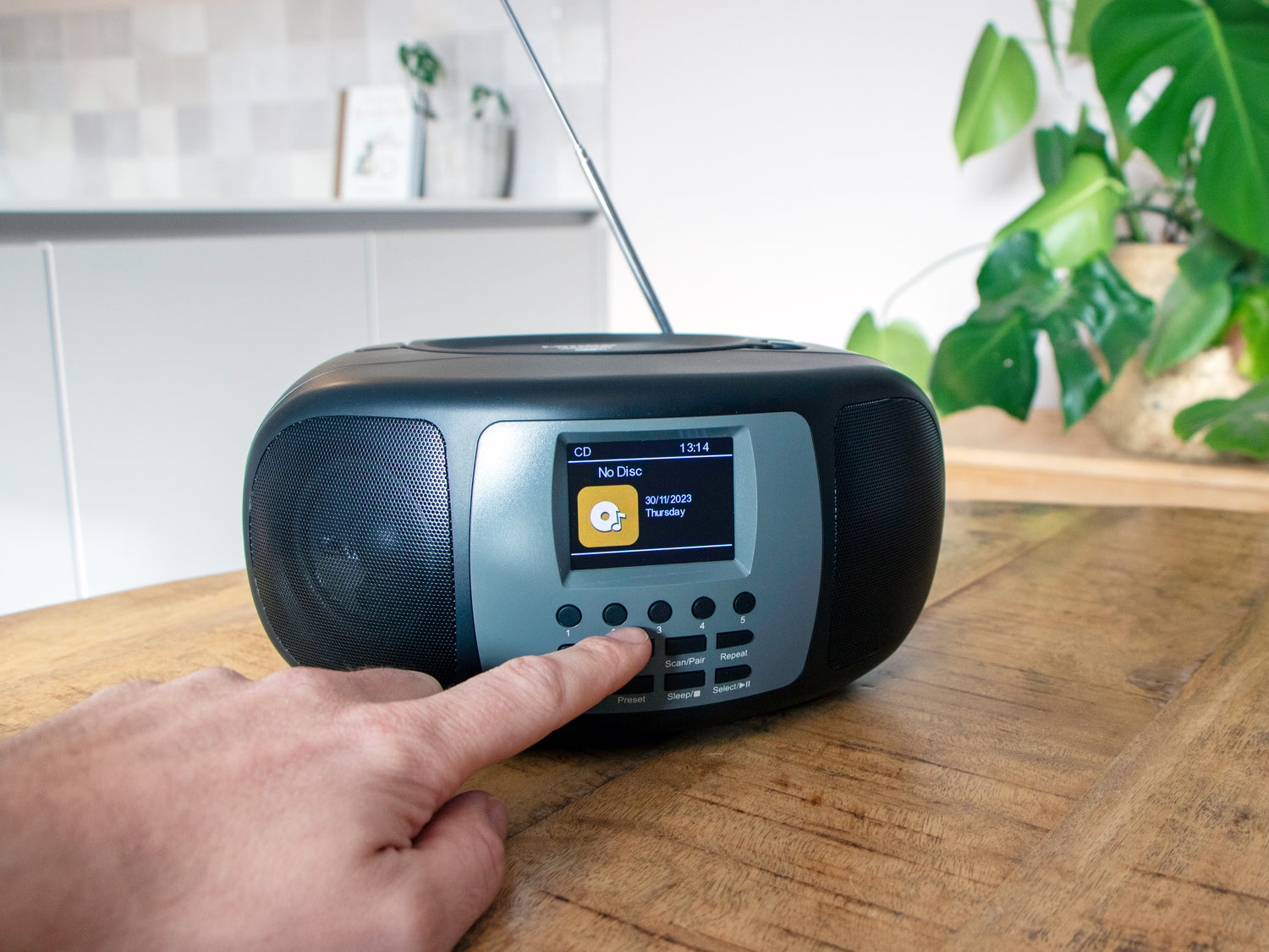 The SCD-860BK receives both DAB+ and FM frequencies without interference. With the option of both technologies, you have access to the best of both worlds. FM radio, a proven and reliable technology, remains popular and accessible, ensuring a wide availability of radio stations. DAB+, designed to replace FM in the future, provides listeners with digital sound quality without the interference sometimes present in analogue FM radios. DAB+ also offers a broader range of stations and information. With the 5 preset buttons, you can store your favorite stations directly in memory, eliminating the need to search for them later.