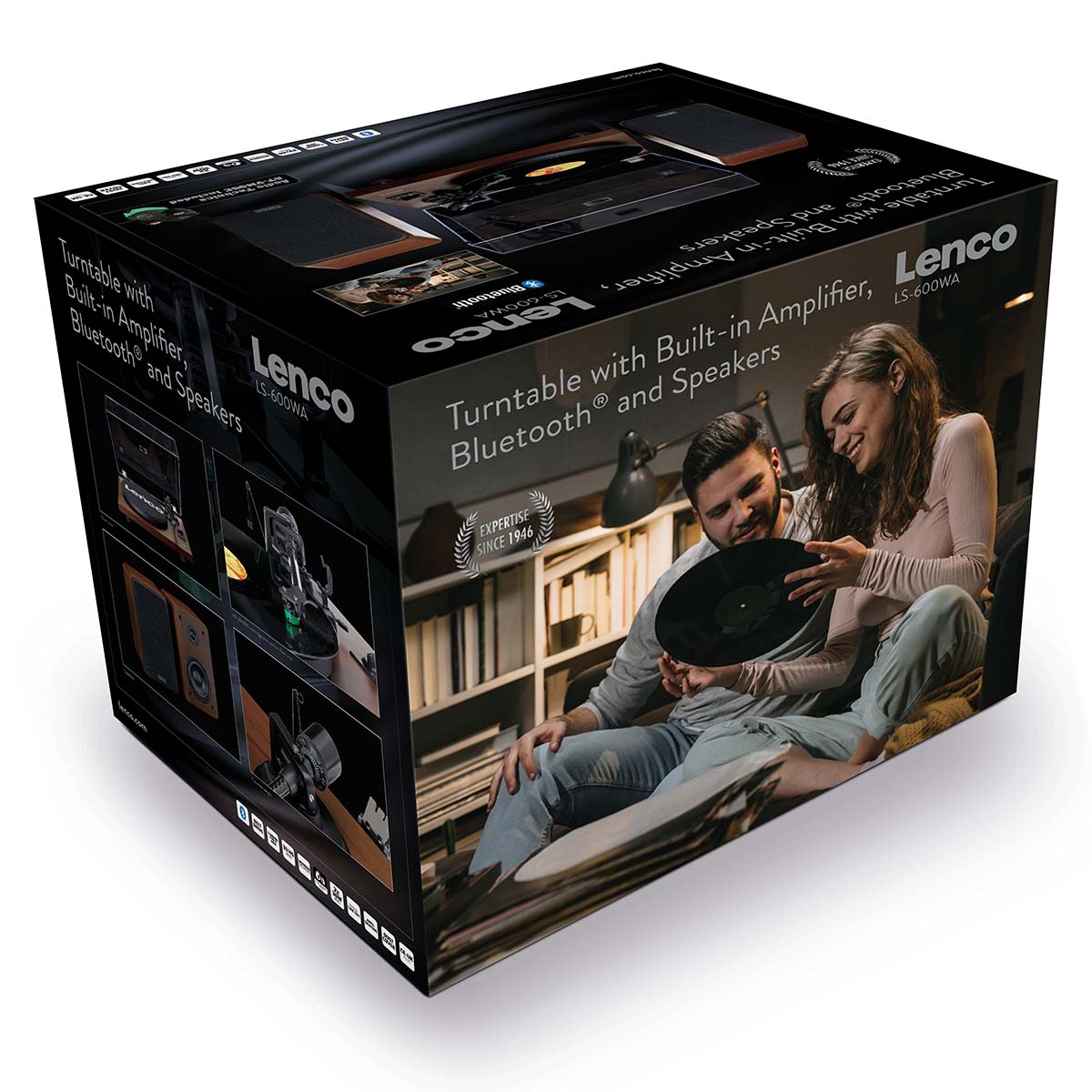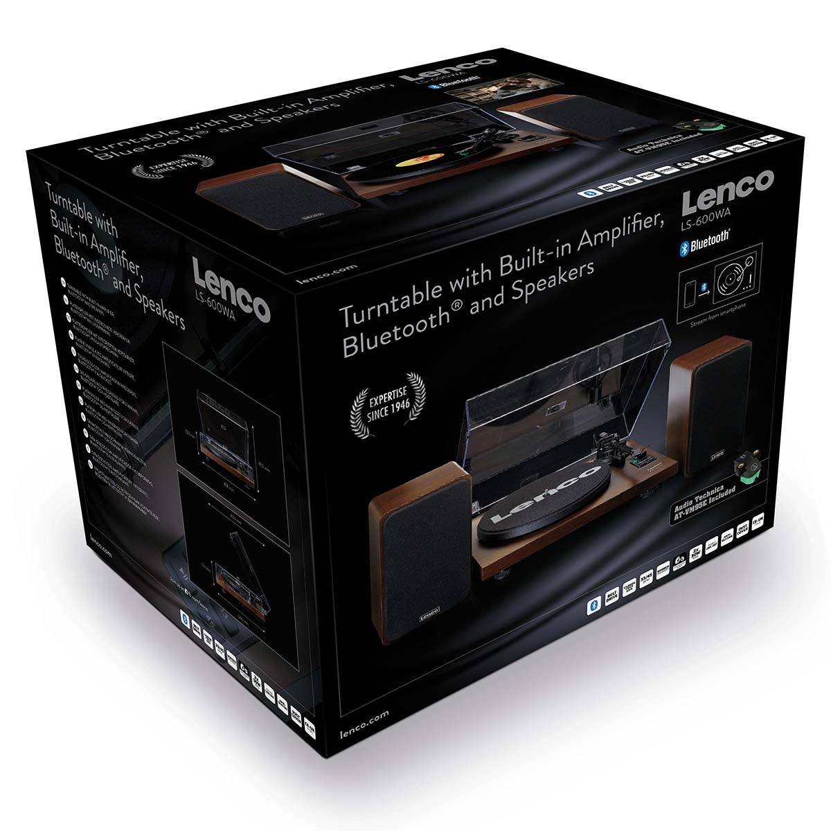 With the Lenco LS-600, you have everything you need to relive the warm sound of your favorite records. The LS-600 conceals the latest technology in a classic design: a carbon fiber arm with a detachable headshell equipped with an Audio-Technica cartridge AT-VM95E. It offers you a warm sound of Hi-Fi quality.