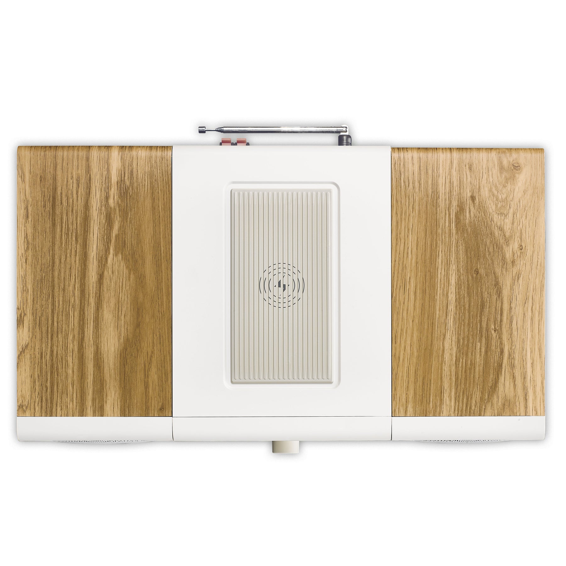 The micro system combines a modern white finish with elegant wood accents for a timeless design. This allows the micro system to blend seamlessly into any interior. For added flexibility, the speakers can be placed separately from the main unit, allowing you to perfectly adjust the setup of the stereo system to suit your environment and preferences.