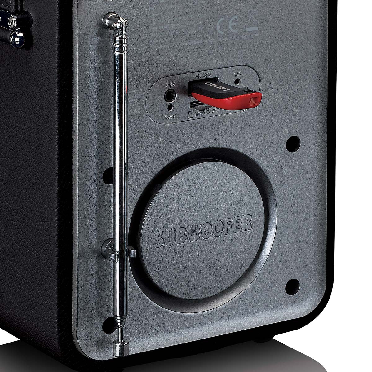 The built-in subwoofer gives you a nice, full sound. Lie back in the grass and choose your favourite channel using the included remote control. You can then easily save your favourite twenty radio stations and at the click of a button, your music immediately sounds crystal clear through the park. The Bluetooth® function allows you to conveniently stream your smartphone or tablet. you can also listen to your favourite music from you USB, SD card or connect your device with the Aux cable.