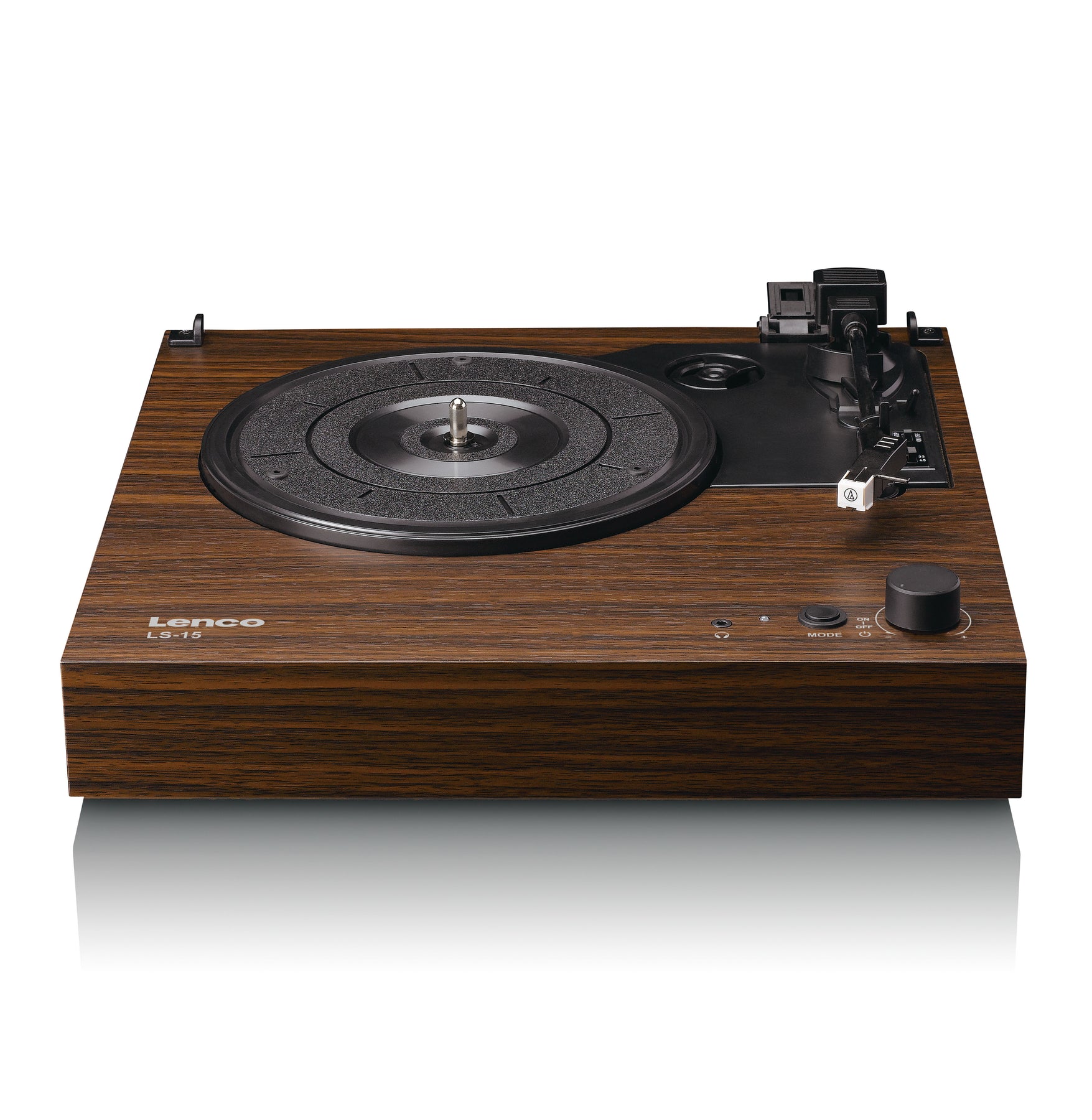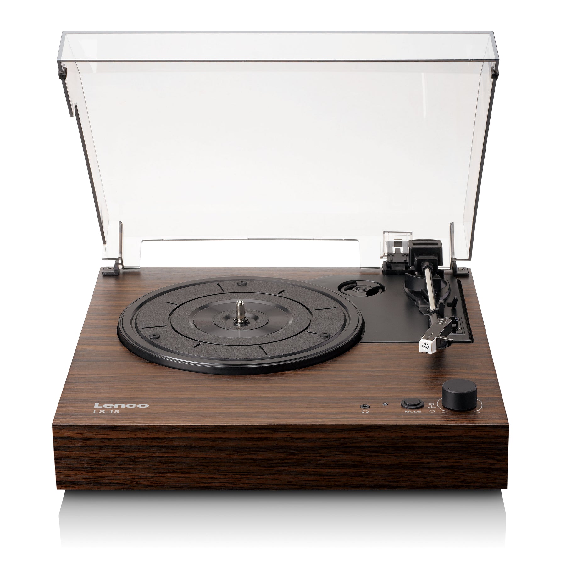 Looking for a record player with an outstanding price-quality ratio? Then the Lenco LS-15WD is the perfect choice for you! The LS-15WD is a belt-driven record player with a wooden housing, featuring Bluetooth® reception and transmission, two built-in speakers, an AT3600L cartridge, and an auto-stop function. With this modern record player, you can easily enjoy your favourite vinyl records or effortlessly stream music from your smartphone. Thanks to its compact size and stylish design, the record player fits perfectly into any space. So, if you’re looking for an easy and user-friendly way to experience the charm of vinyl, look no further: the LS-15WD is a complete record player equipped with all the essential features. The Lenco LS-15 is available in two colours: black (LS-15BK) and wood (LS-15WD).