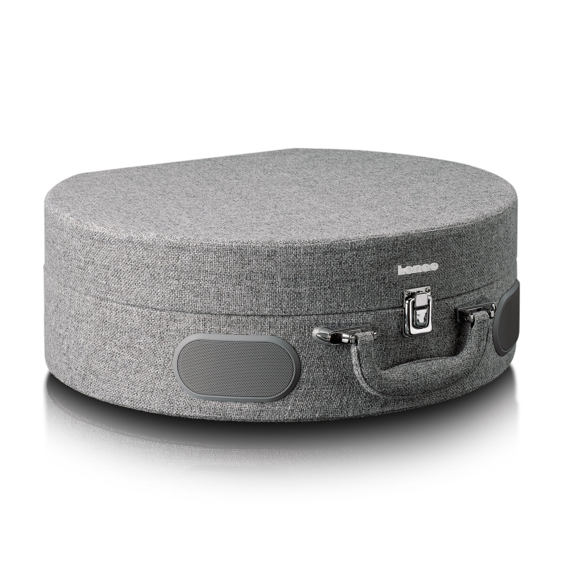 The LS-66GY is a round retro record player with an MDF wooden housing and a high-quality fabric finish, designed as a suitcase. This so-called suitcase record player is easy to transport and use. Simply open the case and listen to your favourite vinyl records through the integrated speakers. The built-in stereo amplifier ensures powerful and well-balanced sound reproduction. The sturdy housing with a handle provides optimal protection, ensuring your record player is always safely stored and easy to transport. A true all-in-one solution for vinyl lovers!