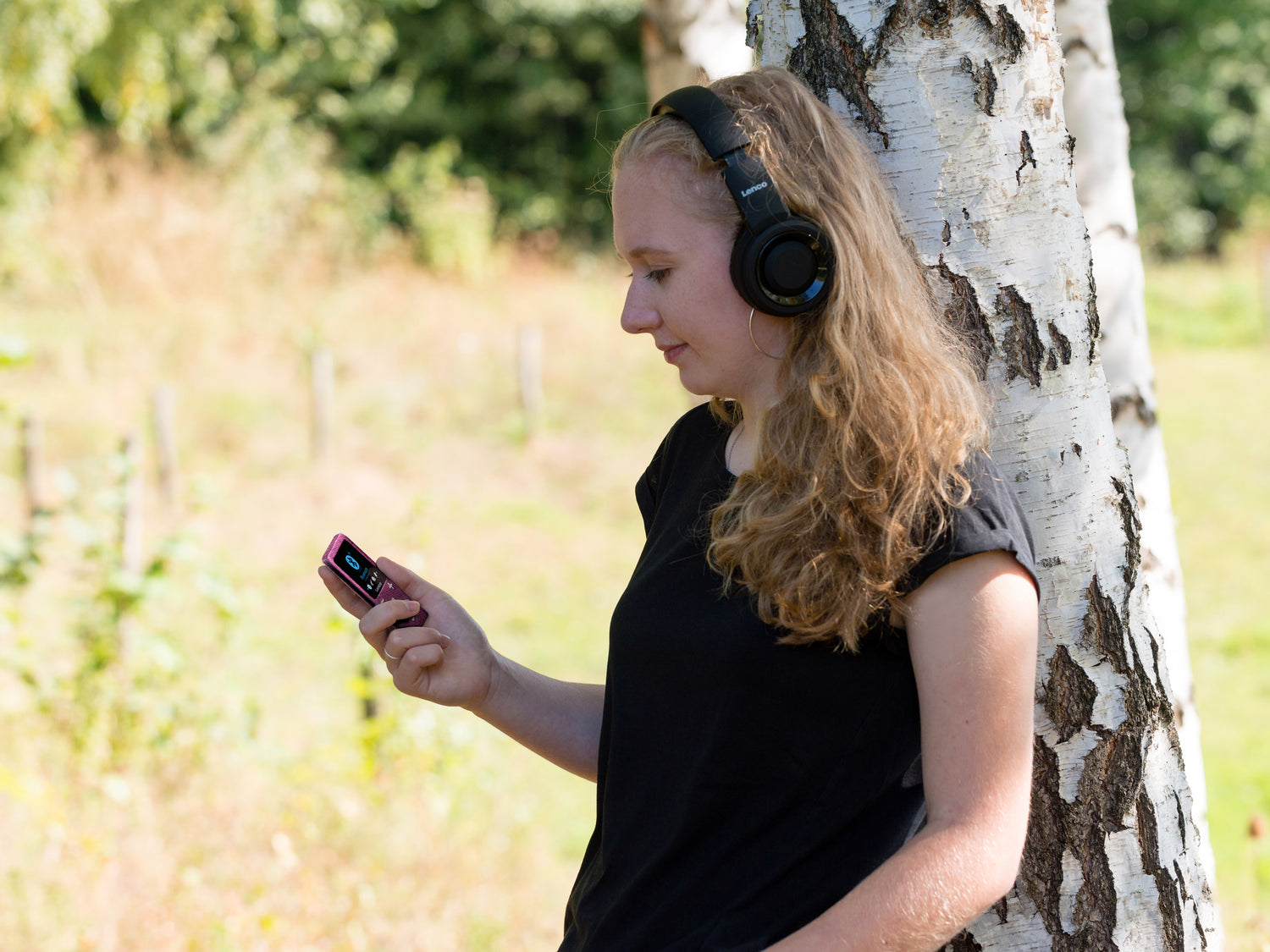 Choose from 3 colours: blue, grey and pink. Also included us a USB cable and earphones.