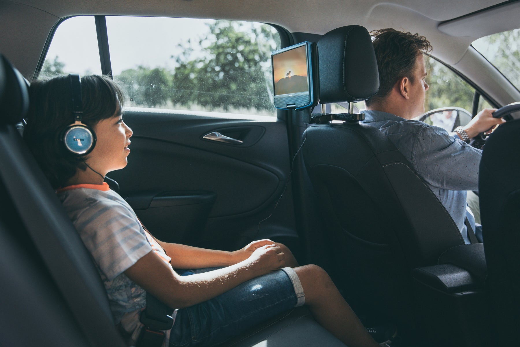 With the headrest, attachment kit; kids can watch the DVD screen in a comfortable and safe position in the car. The screen can be attached to the back of the headrest of the passenger in the front of the car.