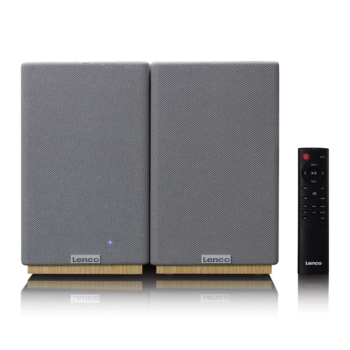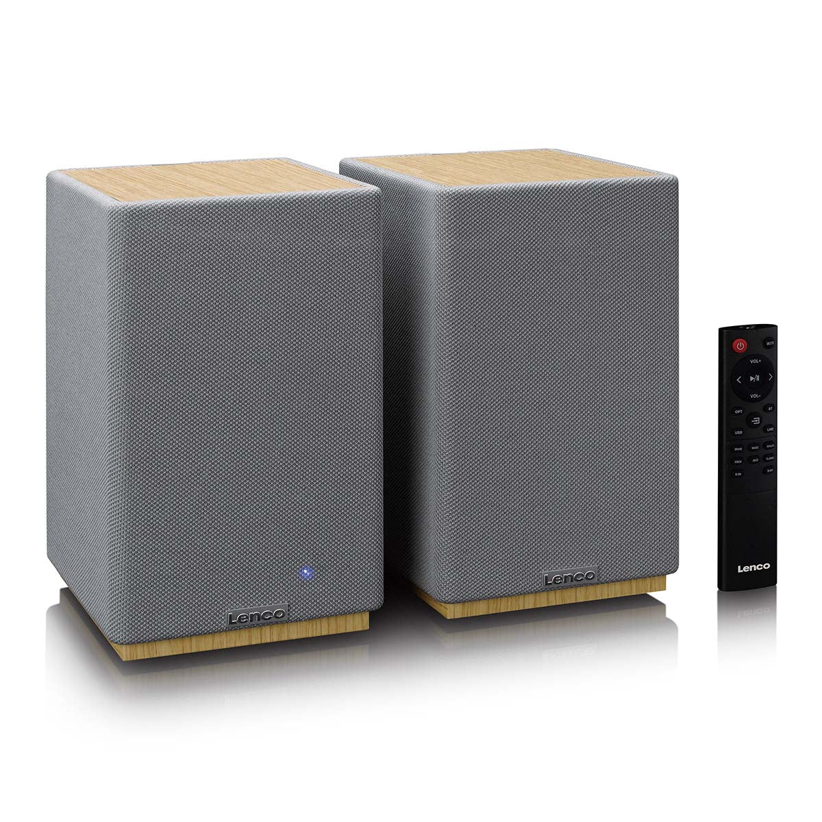 With their wood-effect and grey finish and compact size, the Lenco SPB-241WDGY bookshelf speakers make a stylish addition to any interior. They combine modern elegance with the durability and quality that Lenco is known for. Thanks to their user-friendly design and the included remote control, you can easily adjust the volume, input and your preferred audio source.