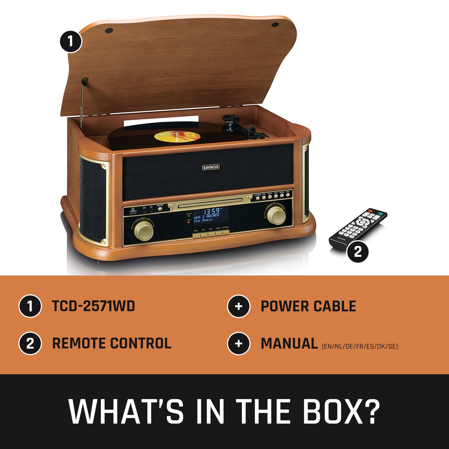 De Classic Phono (by Lenco) TCD-2571WD is een all-in-one multifunctioneel muzieksysteem met een prachtig retro ontwerp dat elk interieur verrijkt. De TCD-2571WD wordt gekenmerkt door de ingebouwde platenspeler met riemaandrijving, maar beschikt over zó veel meer dan dat. De TCD-2571WD combineert moeiteloos klassieke functionaliteiten met moderne afspeelmogelijkheden. Zo beschikt de houten retro platenspeler onder meer over Bluetooth® ontvangst, DAB+/FM radio, een ingebouwde CD-speler en een cassettespeler. Dit biedt een complete luisterervaring met de perfecte balans tussen de nostalgische charme van vintage esthetiek en moderne functionaliteit. De TCD-2571WD is voorzien van MDF behuizing en wordt geleverd met een afstandsbediening voor extra gebruiksgemak.