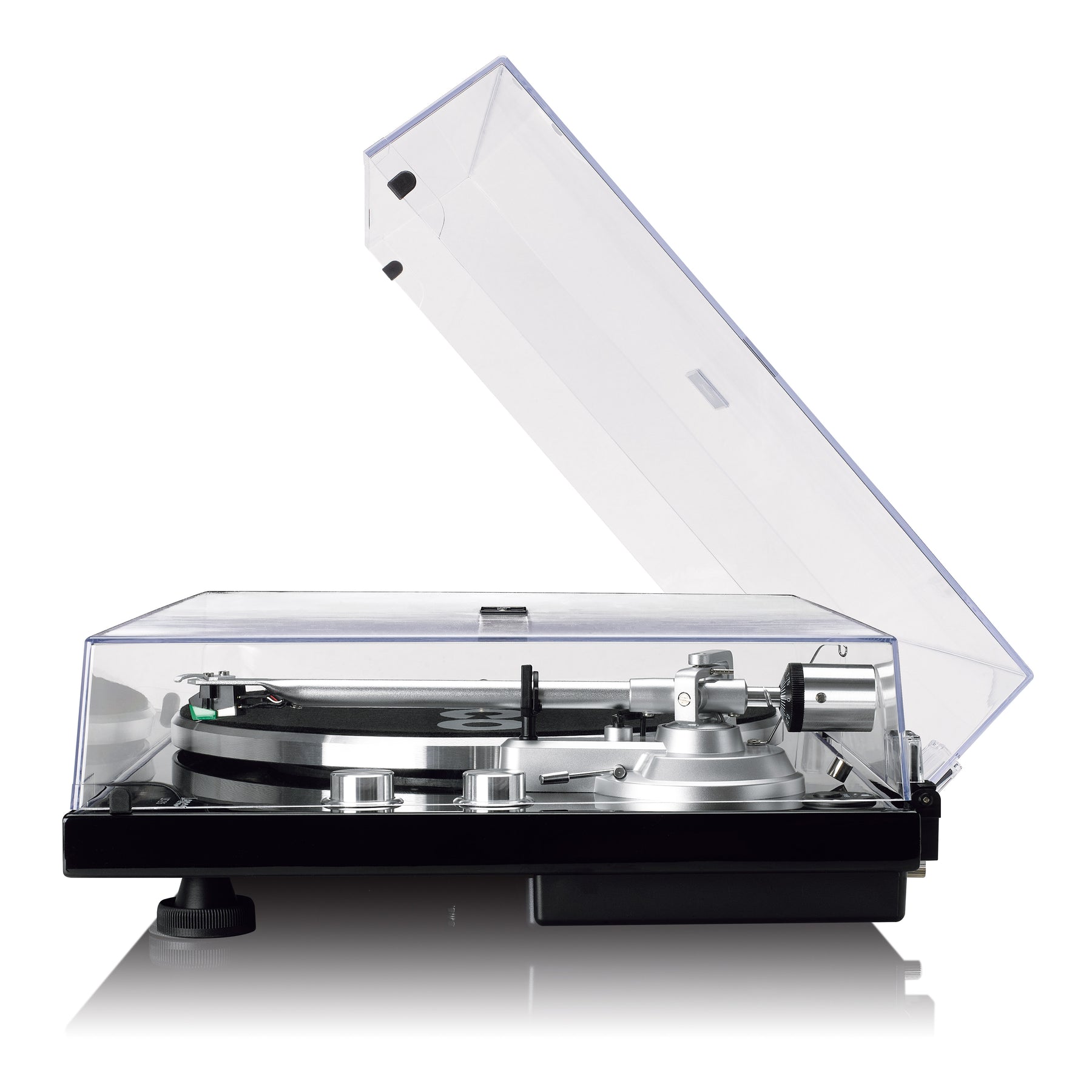 De hoogglans Piano Black afwerking tilt de esthetiek van je luisterruimte naar een hoger niveau. De glanzende, verfijnde look in combinatie met de hoogwaardige materialen maakt deze platenspeler een ware blikvanger.