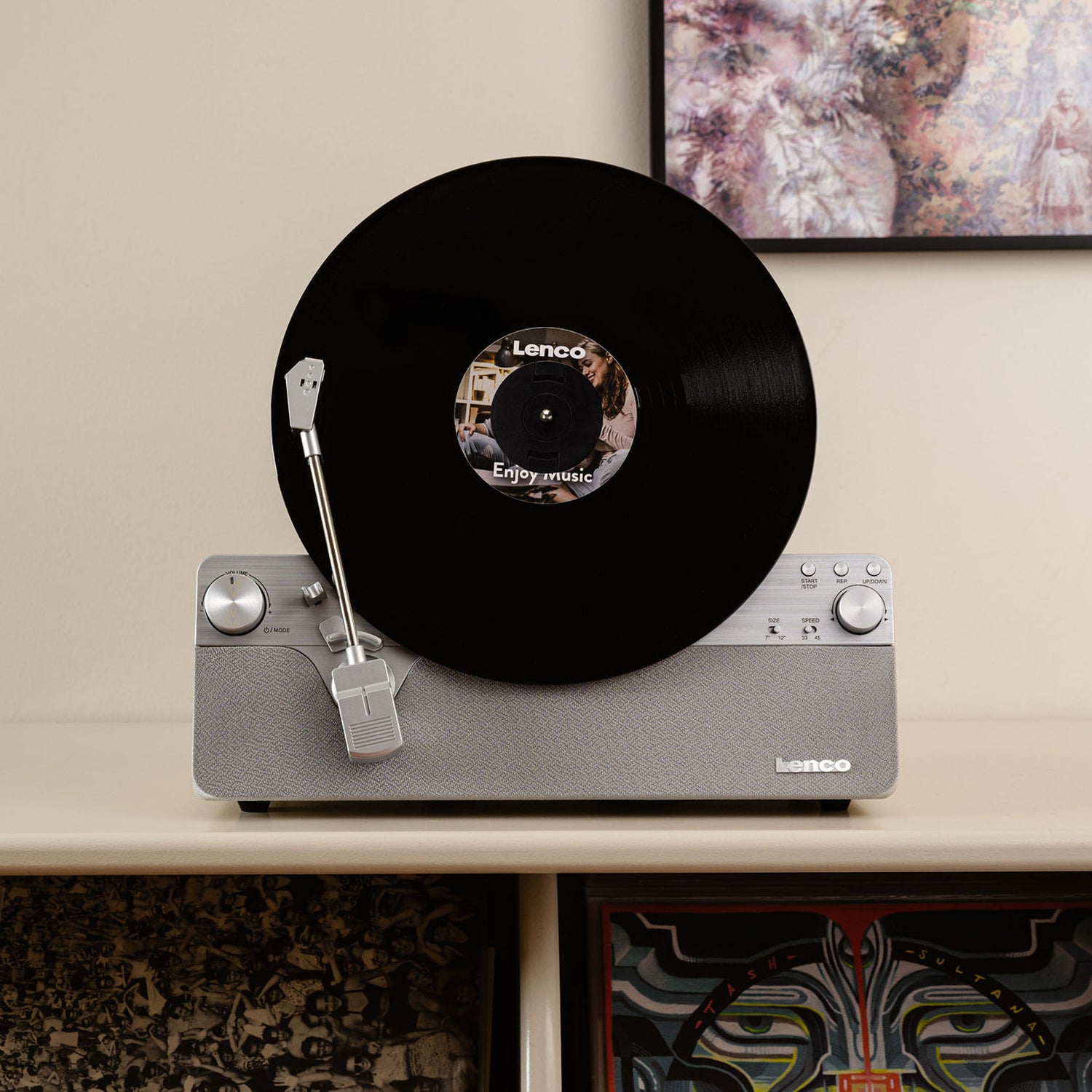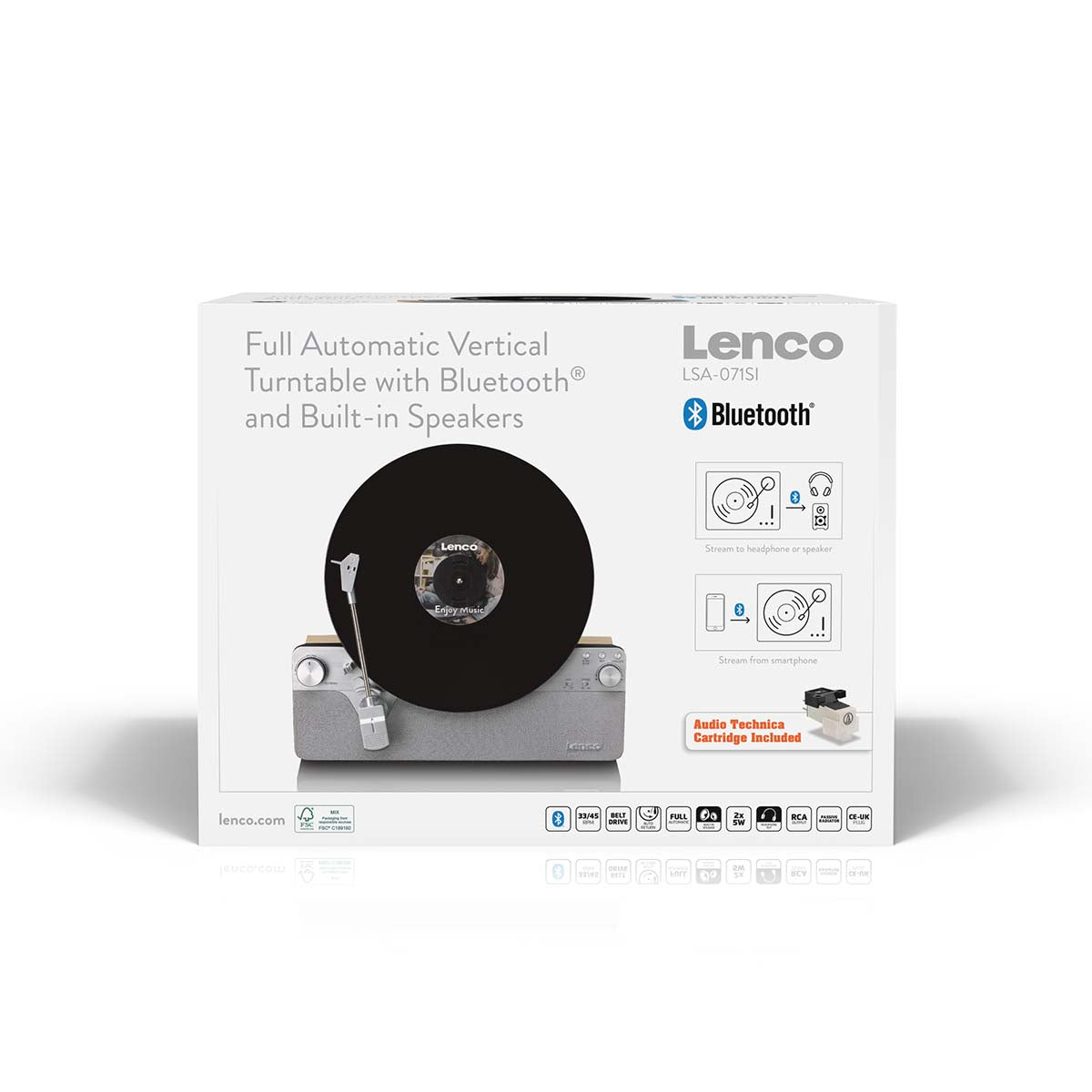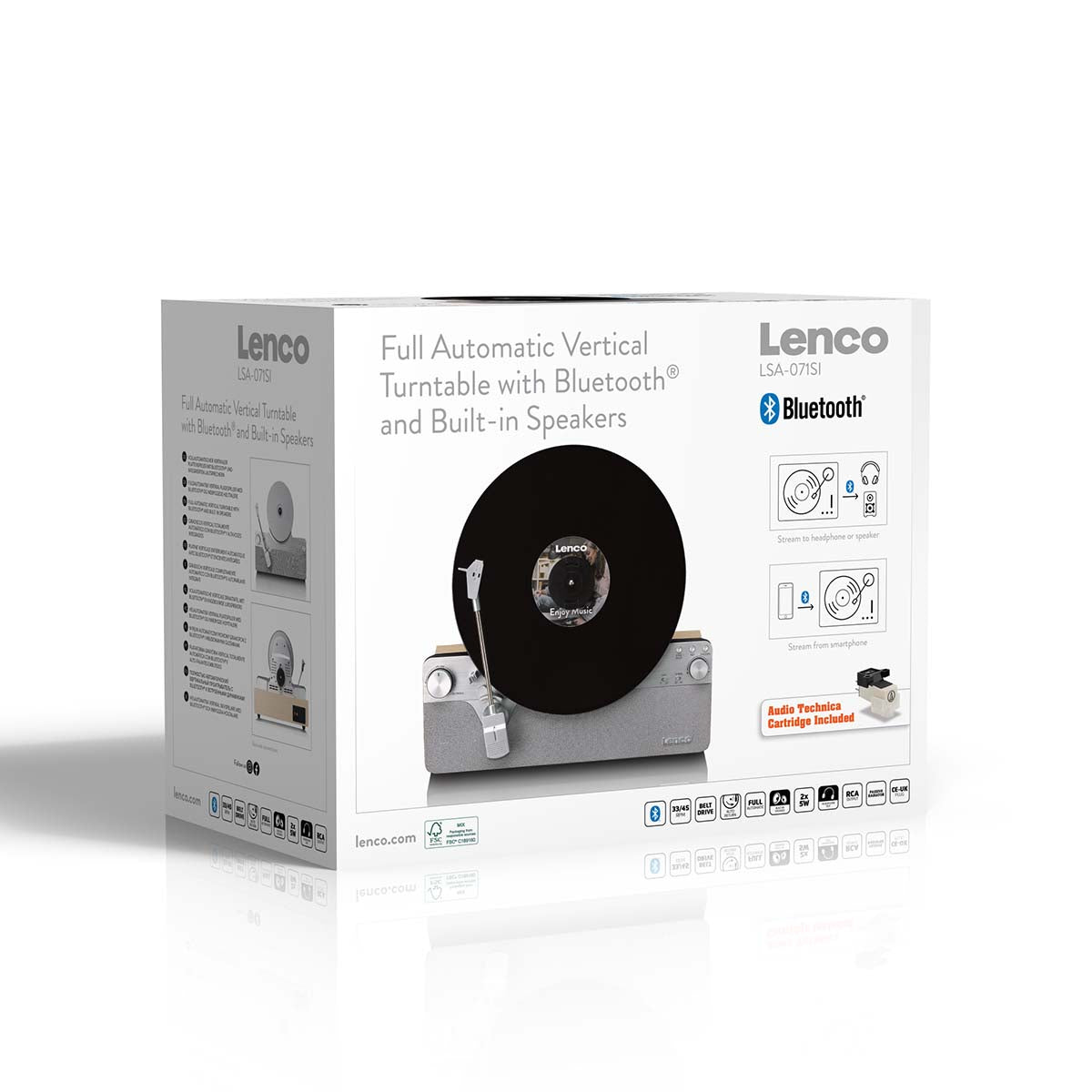Een Lenco platenspeler met een rechtopstaand design? Een wens die niet langer gekoesterd hoeft te worden! Met de revolutionaire Lenco LSA-071SI combineer je de charme van vinyl met een innovatief en esthetisch aantrekkelijk ontwerp dat elke muziekliefhebber versteld doet staan. De Lenco LSA-071SI is een volautomatische verticale platenspeler met ingebouwde speakers en Bluetooth®, ontworpen voor een unieke luisterervaring en als stijlvolle toevoeging aan je interieur. Het rechtop zetten van een draaiende plaat is een technische uitdaging, maar doet bij de LSA-071SI geen afbreuk aan de geluidskwaliteit! Dit komt onder meer door de stabiele riemaandrijving, de ingebouwde stereo versterker, de hoogwaardige Audio-Technica AT-3600L cartridge en de volledig automatische eigenschappen van de platenspeler. Ontdek snel hoe de Lenco LSA-071SI jouw vinylcollectie verticaal en volledig automatisch tot leven brengt!