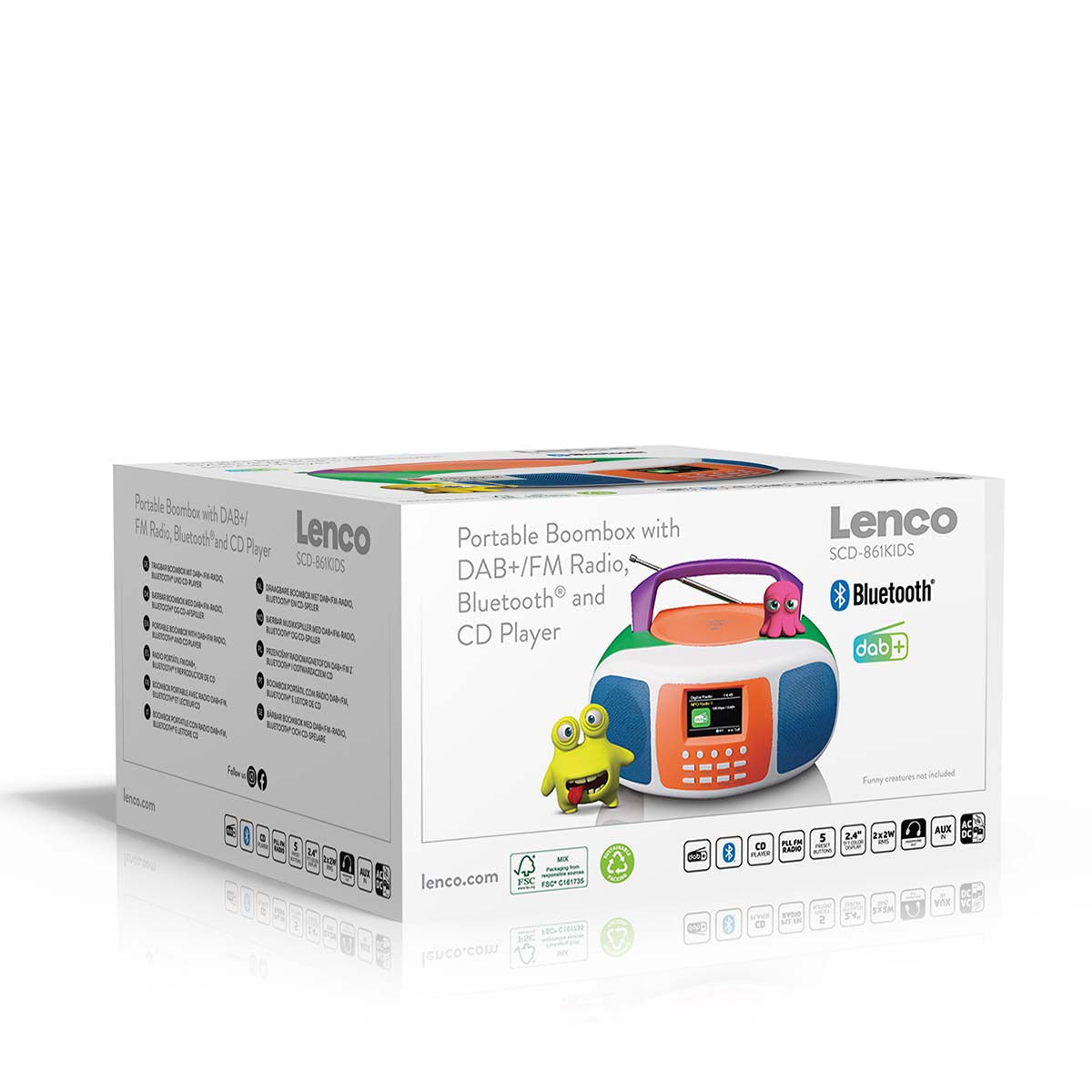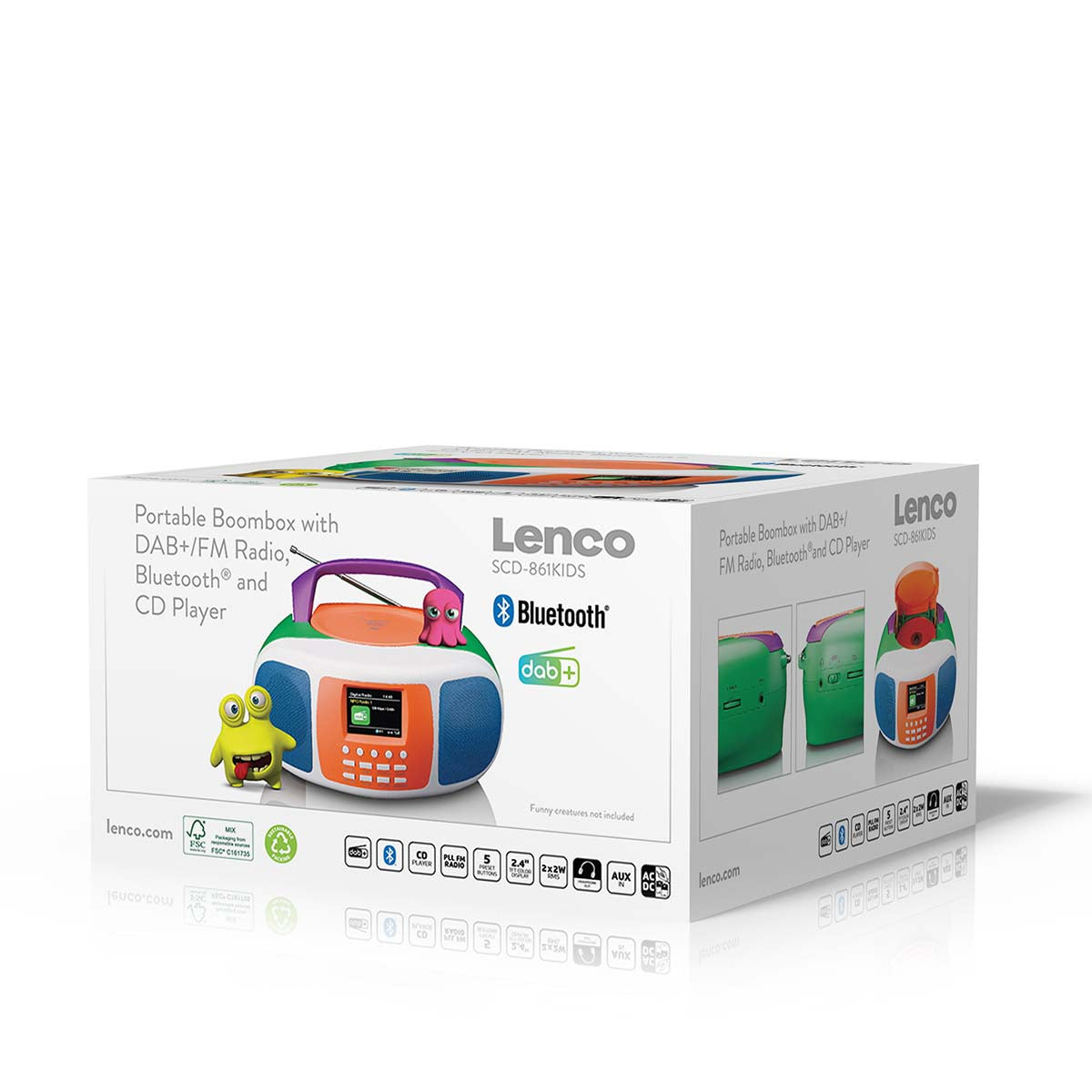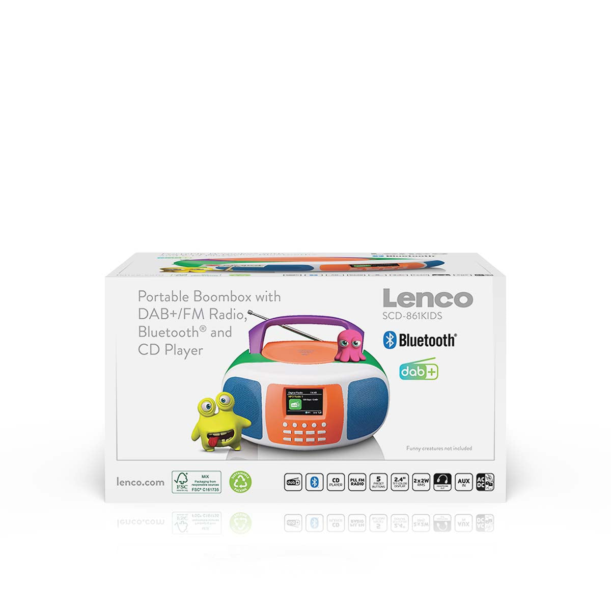 Ontdek de veelzijdigheid van de Lenco SCD-861KIDS, een stijlvolle draagbare DAB+/FM radio met Bluetooth® en ingebouwde CD-speler. Deze radio, gehuld in een kleurrijk en uitnodigend design waar kinderen meteen blij van worden, combineert de nieuwste digitale technologie met traditionele functionaliteiten. Het compacte ontwerp en de mogelijkheid om zowel op batterijen als op netstroom te werken, zorgen ervoor dat de radio geschikt is voor zowel thuis als onderweg. Het 2,4 inch (6 cm) TFT LCD kleurendisplay geeft de radio een moderne uitstraling terwijl het ook zorgt voor een verbeterde gebruikerservaring door het helder weergeven van informatie en instellingen.